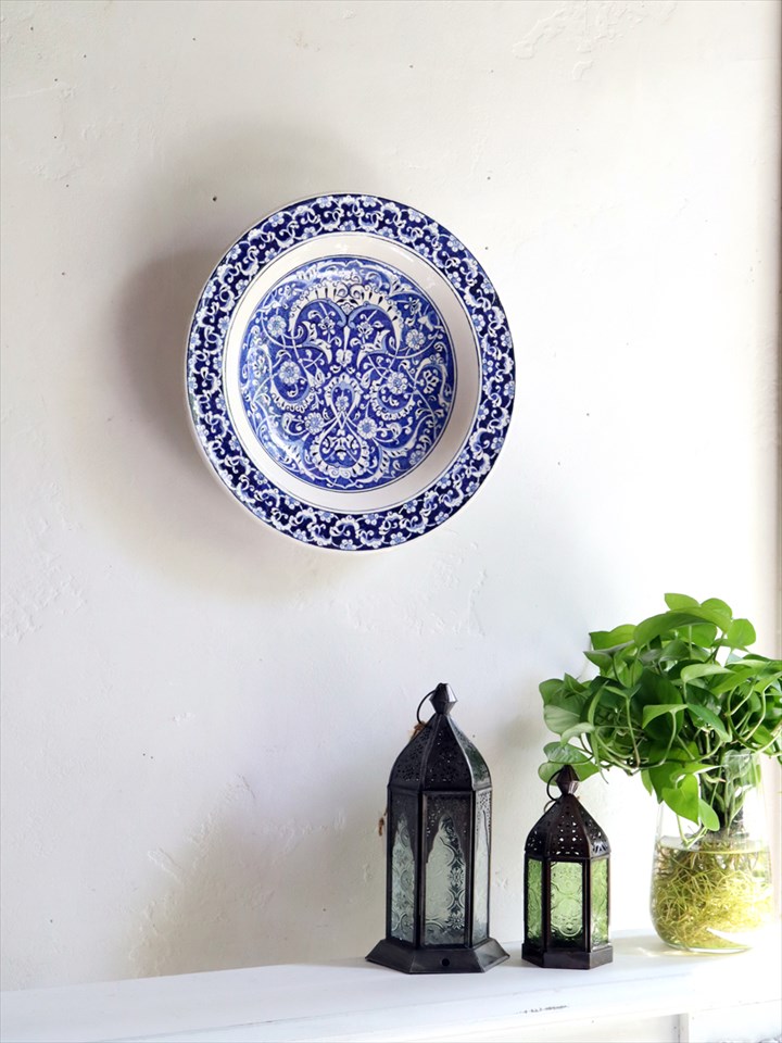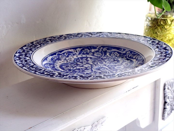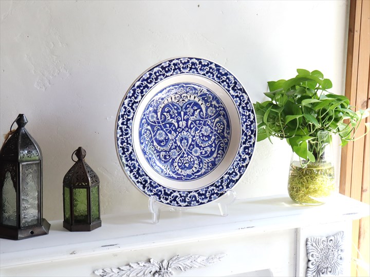 トルコ 手書き絵皿 直径32cm 飾り絵皿 細かなアラベスク文様 藍色 ミュージアムピース オットマンクラシック Turkish Hand Paint Plate