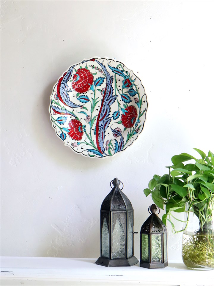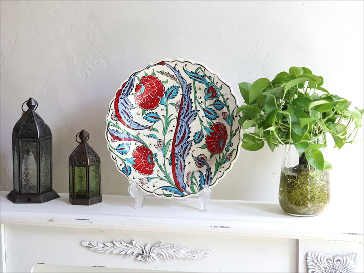 Key:置物 焼き物 陶器 皿 絵皿 飾り皿 プレート トルコ グランドバザール お土産 手書き 絵付け オリエンタル シルクロード Turkish Ceramic Iznik Ottoman Style Istanbul