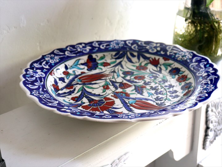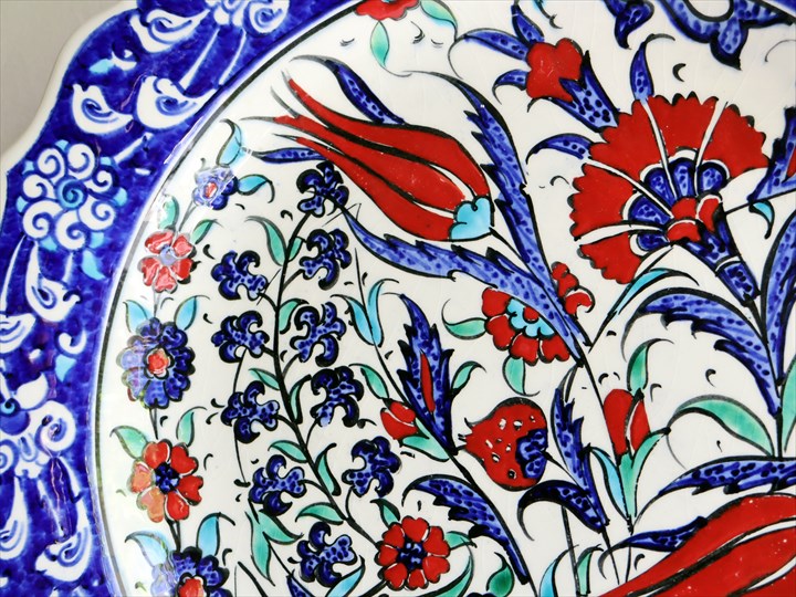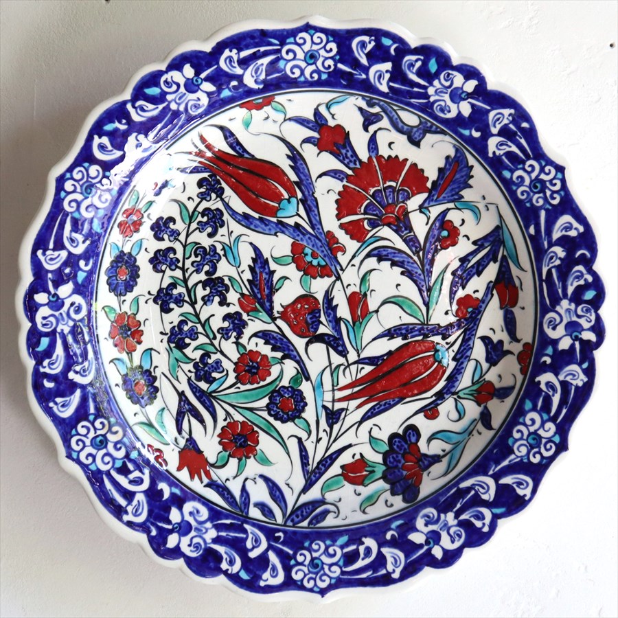 トルコ 手書き絵皿 直径31cm 飾り絵皿 チューリップとカーネーション ミュージアムピース オットマンクラシック Turkish Hand Paint Plate