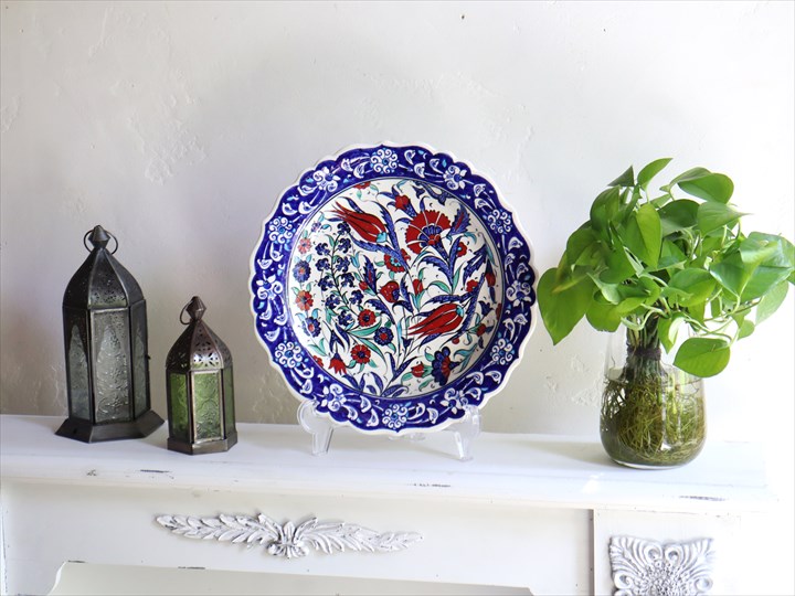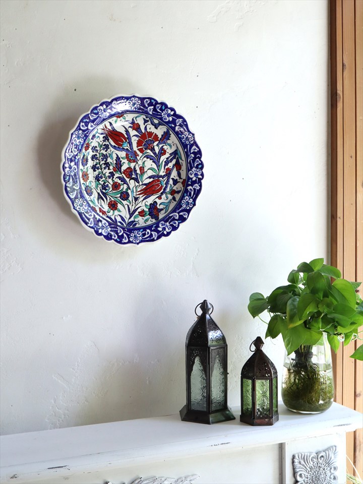 Key:置物 焼き物 陶器 皿 絵皿 飾り皿 プレート トルコ グランドバザール お土産 手書き 絵付け オリエンタル シルクロード Turkish Ceramic Iznik Ottoman Style Istanbul