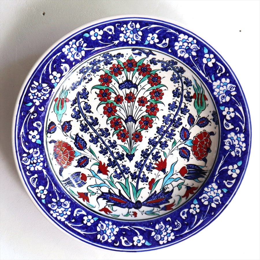 - トルコ 手書き絵皿 直径32cm 飾り絵皿 チューリップとカーネーション ミュージアムピース オットマンクラシック Turkish Hand Paint Plate