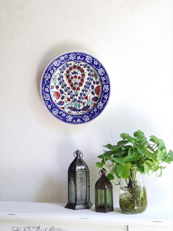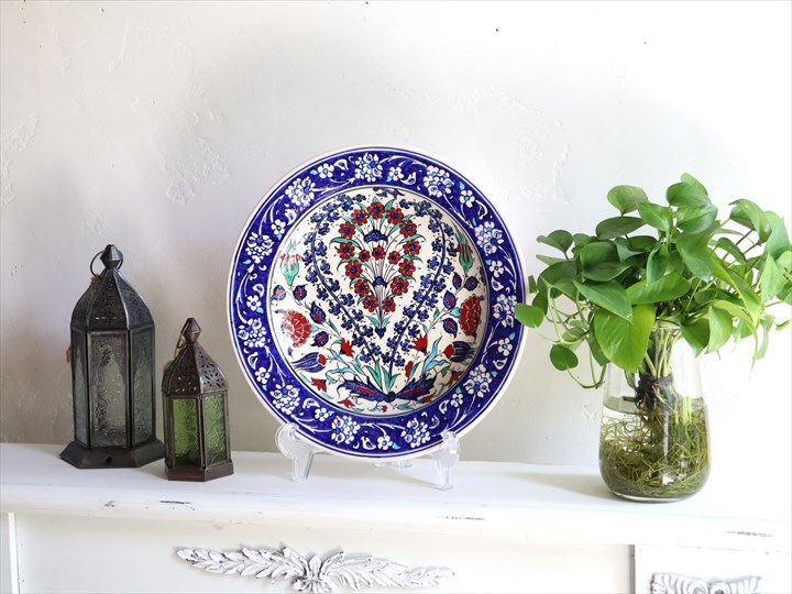 Key:置物 焼き物 陶器 皿 絵皿 飾り皿 プレート トルコ グランドバザール お土産 手書き 絵付け オリエンタル シルクロード Turkish Ceramic Iznik Ottoman Style Istanbul