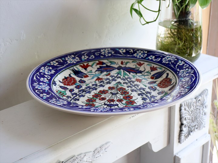 トルコ 手書き絵皿 直径32cm 飾り絵皿 チューリップとカーネーション ミュージアムピース オットマンクラシック Turkish Hand Paint Plate