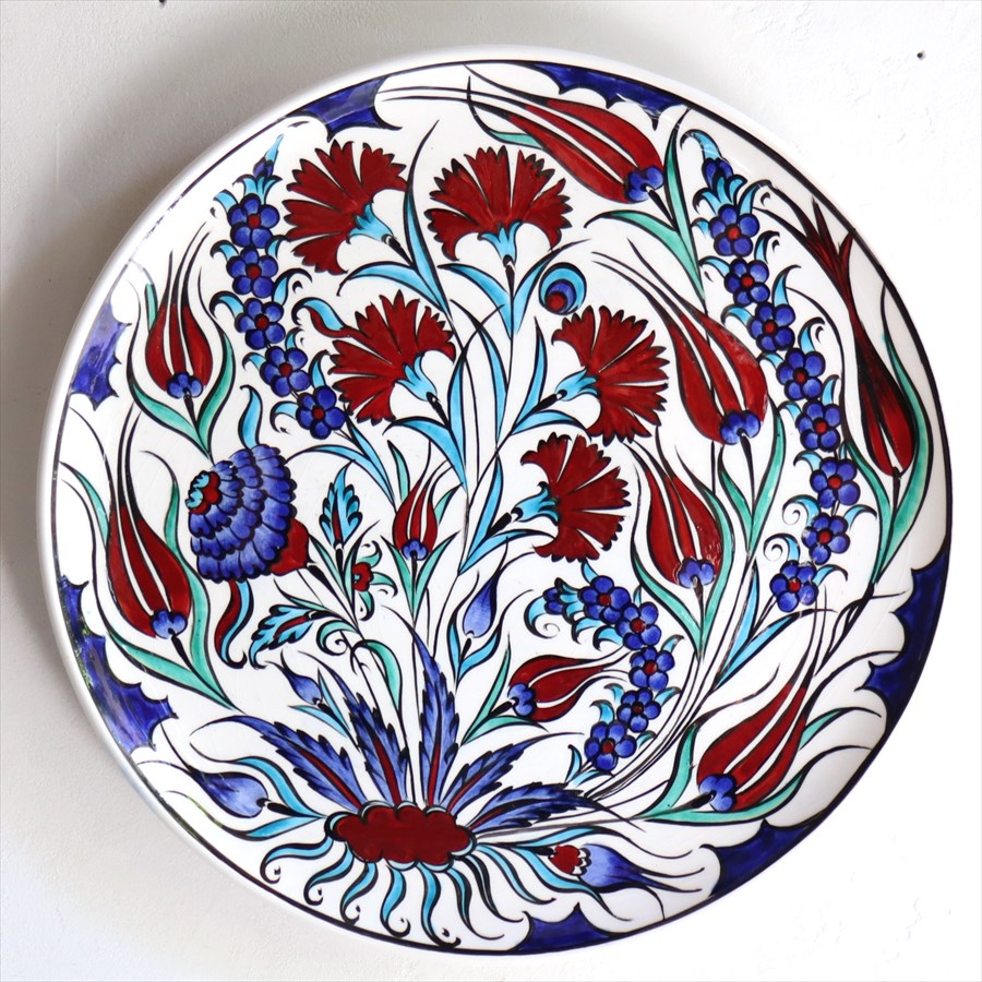 - トルコ 手書き絵皿 直径32.5cm 飾り絵皿 チューリップとカーネーション ミュージアムピース オットマンクラシック Turkish Hand Paint Plate