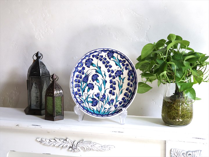 Key:置物 焼き物 陶器 皿 絵皿 飾り皿 プレート トルコ グランドバザール お土産 手書き 絵付け オリエンタル シルクロード Turkish Ceramic Iznik Ottoman Style Istanbul