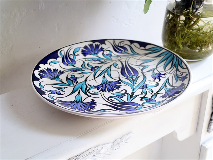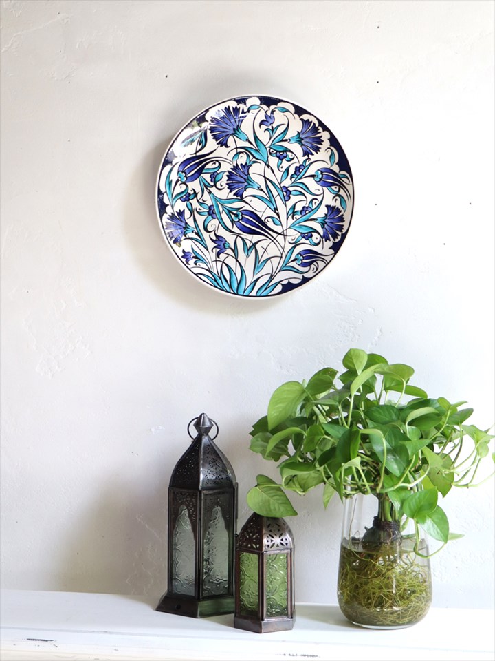 Key:置物 焼き物 陶器 皿 絵皿 飾り皿 プレート トルコ グランドバザール お土産 手書き 絵付け オリエンタル シルクロード Turkish Ceramic Iznik Ottoman Style Istanbul