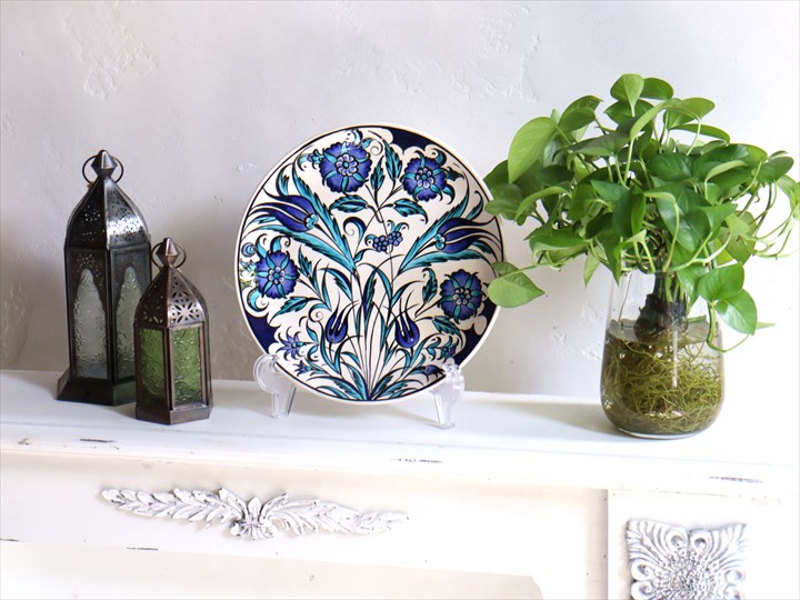 Key:置物 焼き物 陶器 皿 絵皿 飾り皿 プレート トルコ グランドバザール お土産 手書き 絵付け オリエンタル シルクロード Turkish Ceramic Iznik Ottoman Style Istanbul