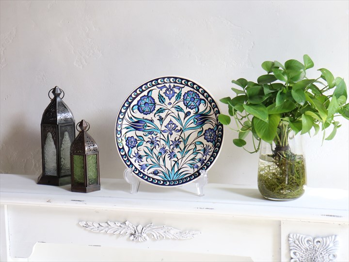 Key:置物 焼き物 陶器 皿 絵皿 飾り皿 プレート トルコ グランドバザール お土産 手書き 絵付け オリエンタル シルクロード Turkish Ceramic Iznik Ottoman Style Istanbul