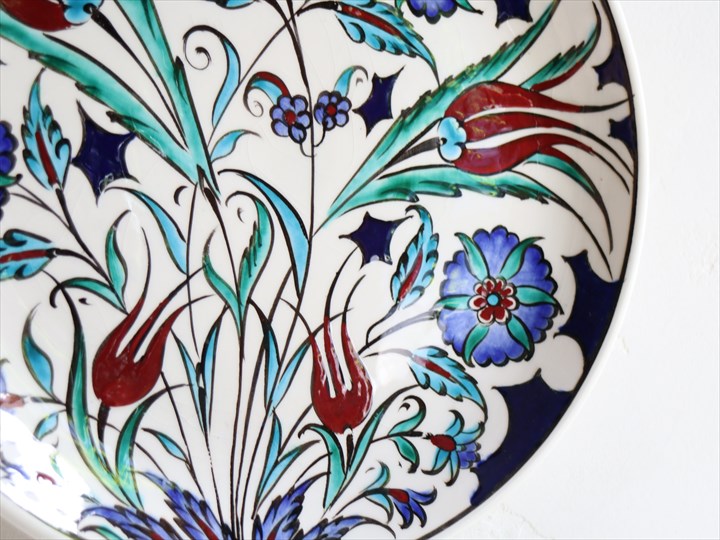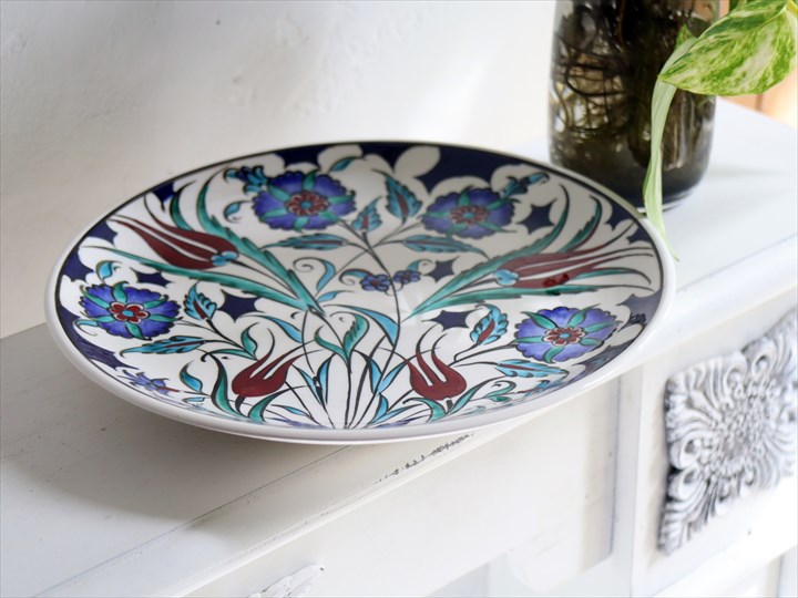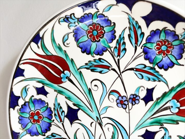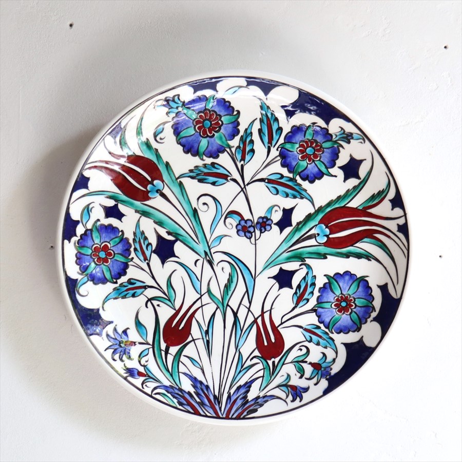 - 手書き絵皿 直径25.5cm トルコ 飾り絵皿 ミュージアムピース オットマンクラシックチューリップとカーネーション Turkish Hand Paint Plate