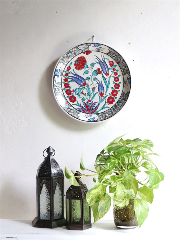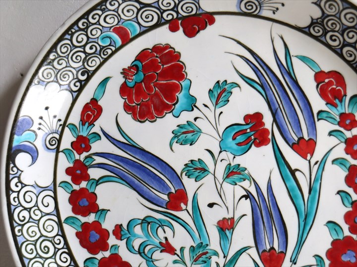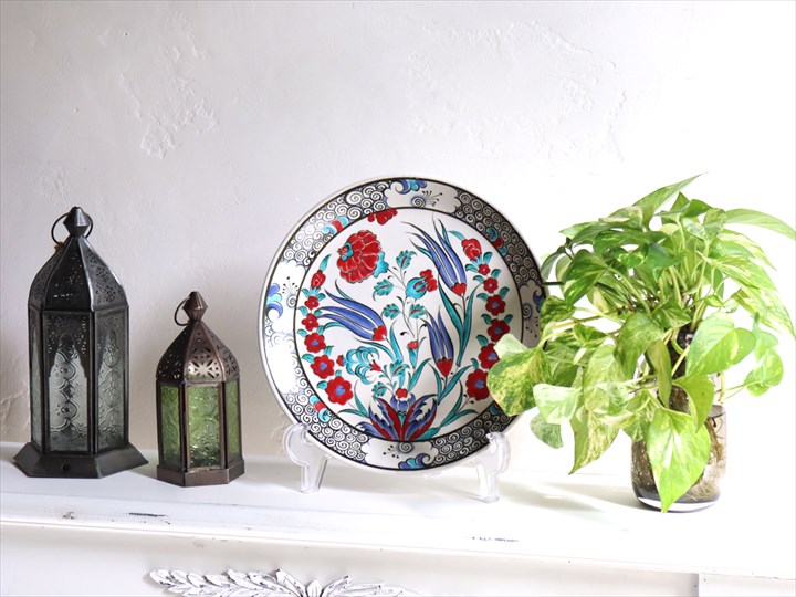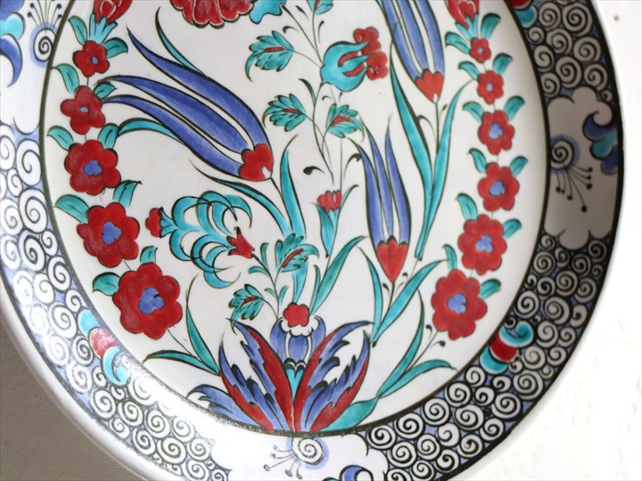 Key:置物 焼き物 陶器 皿 絵皿 飾り皿 プレート トルコ グランドバザール お土産 手書き 絵付け オリエンタル シルクロード Turkish Ceramic Iznik Ottoman Style Istanbul
