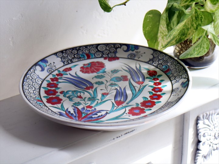 - 手書き絵皿 直径25.5cm トルコ 飾り絵皿 ミュージアムピース オットマンクラシックチューリップとカーネーション Turkish Hand Paint Plate