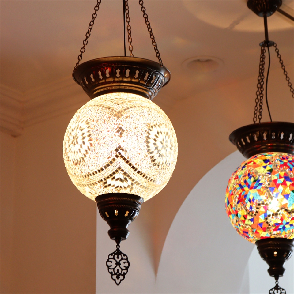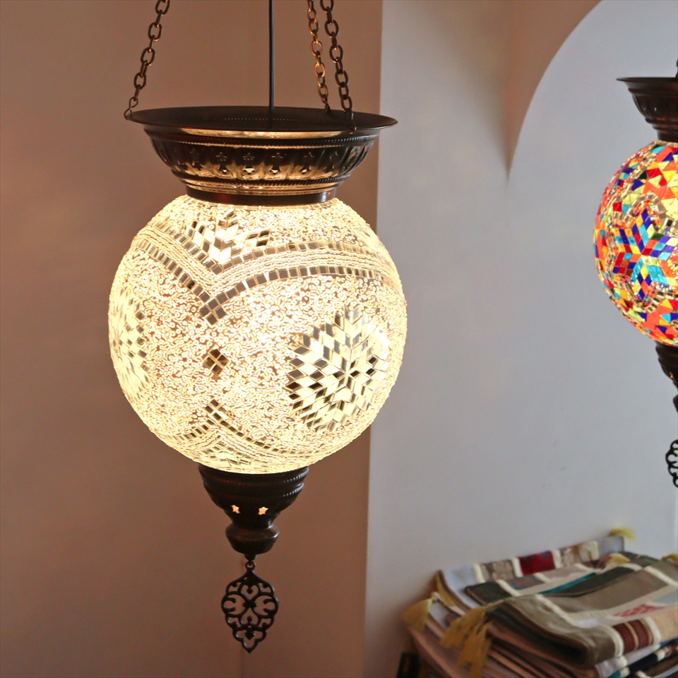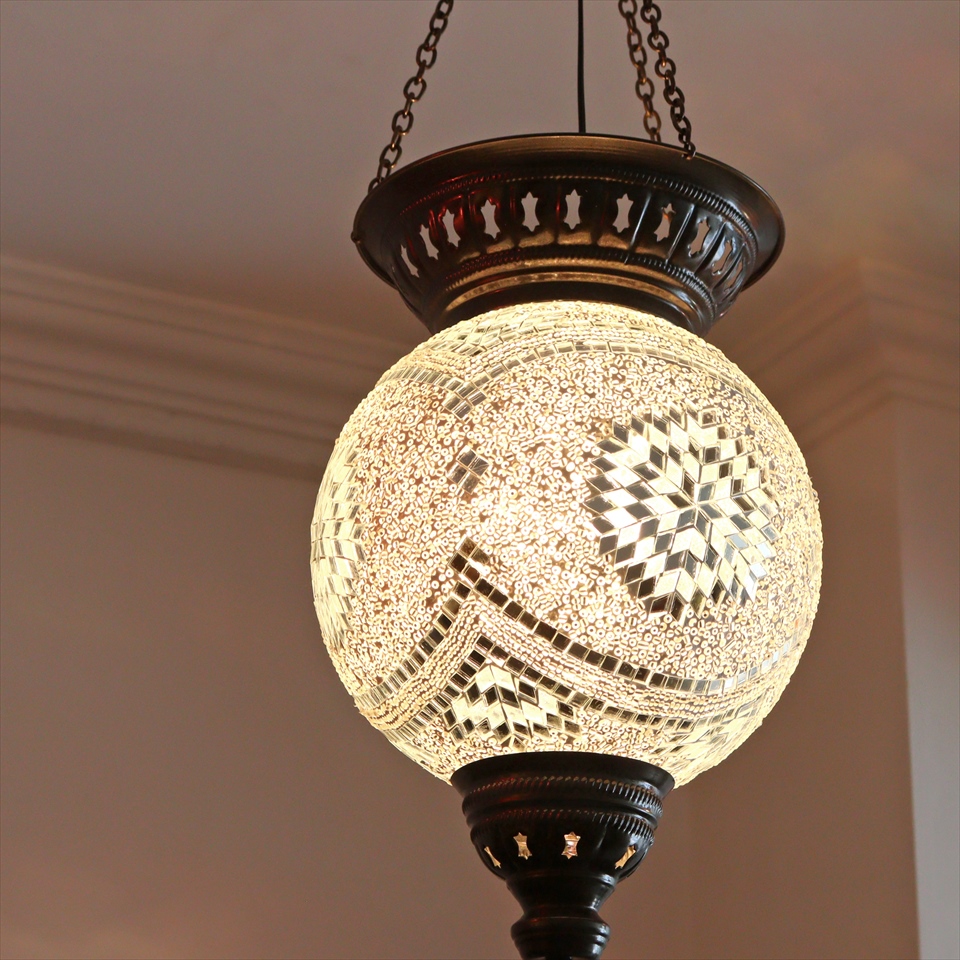 - トルコランプ モザイクランプ 全高92cm 直径25cm ボール型 ホワイト 大型パレスランプ