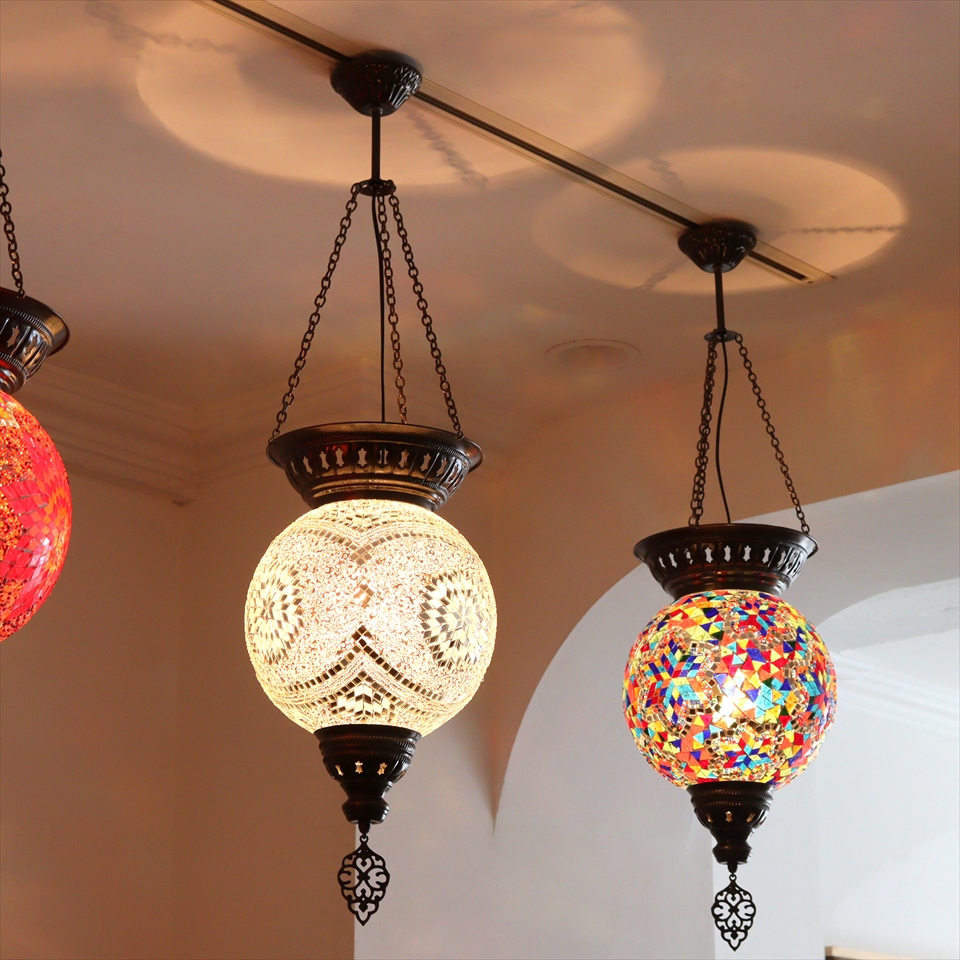 Key:トルコランプ モザイクランプ 天井照明 吹き抜け用照明 パレスランプ 大型 ガラスシェード ペンダントライト シーリングライト ランプ ライト 照明 インテリア エスニック オリエンタル 引っ掛けシーリング対応