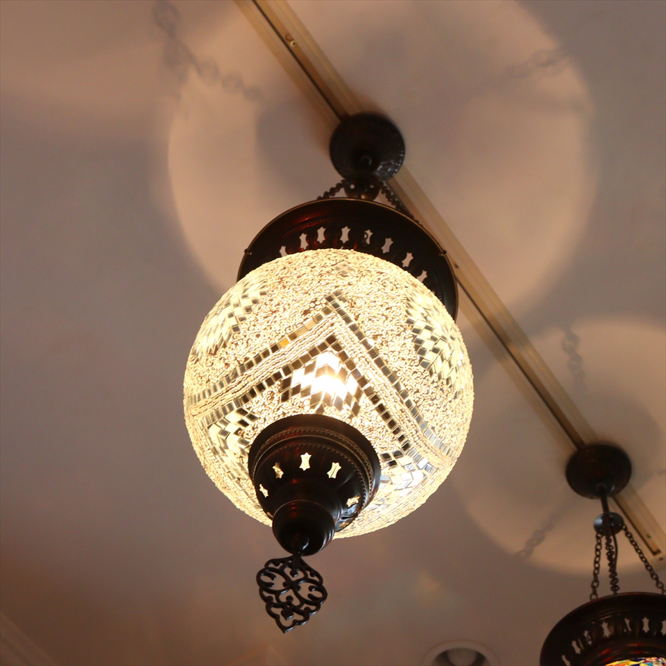 ボンヤリとした灯りがエスニックムード漂う、トルコのモザイクガラスランプです。