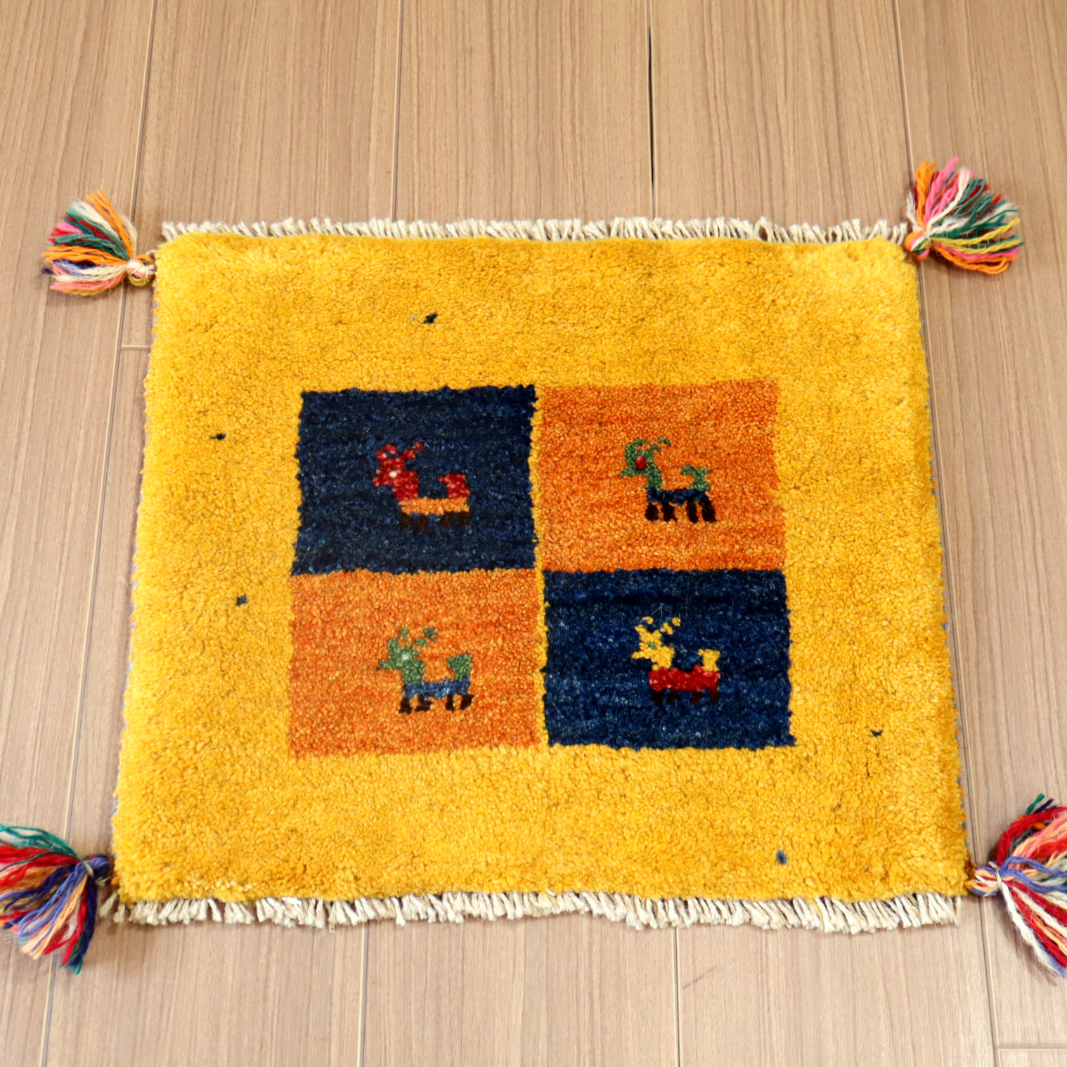 - イラン ギャッベ 39x43cm 遊牧民の手織りラグ 座布団サイズ