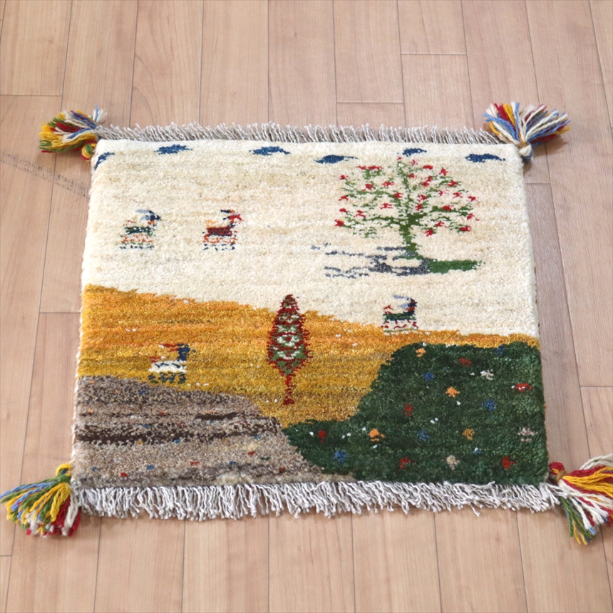 - ギャッベ イラン産 座布団サイズ 41x45cm