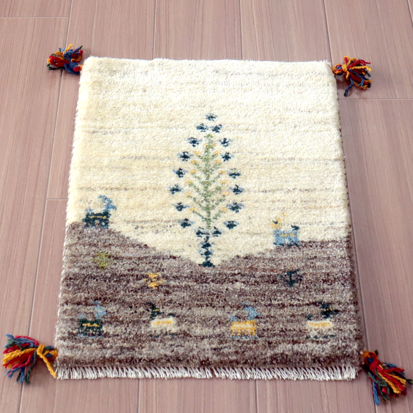 - ミニギャッベ イラン 遊牧民のふかふかラグ 54x40cm 花の咲く生命の樹