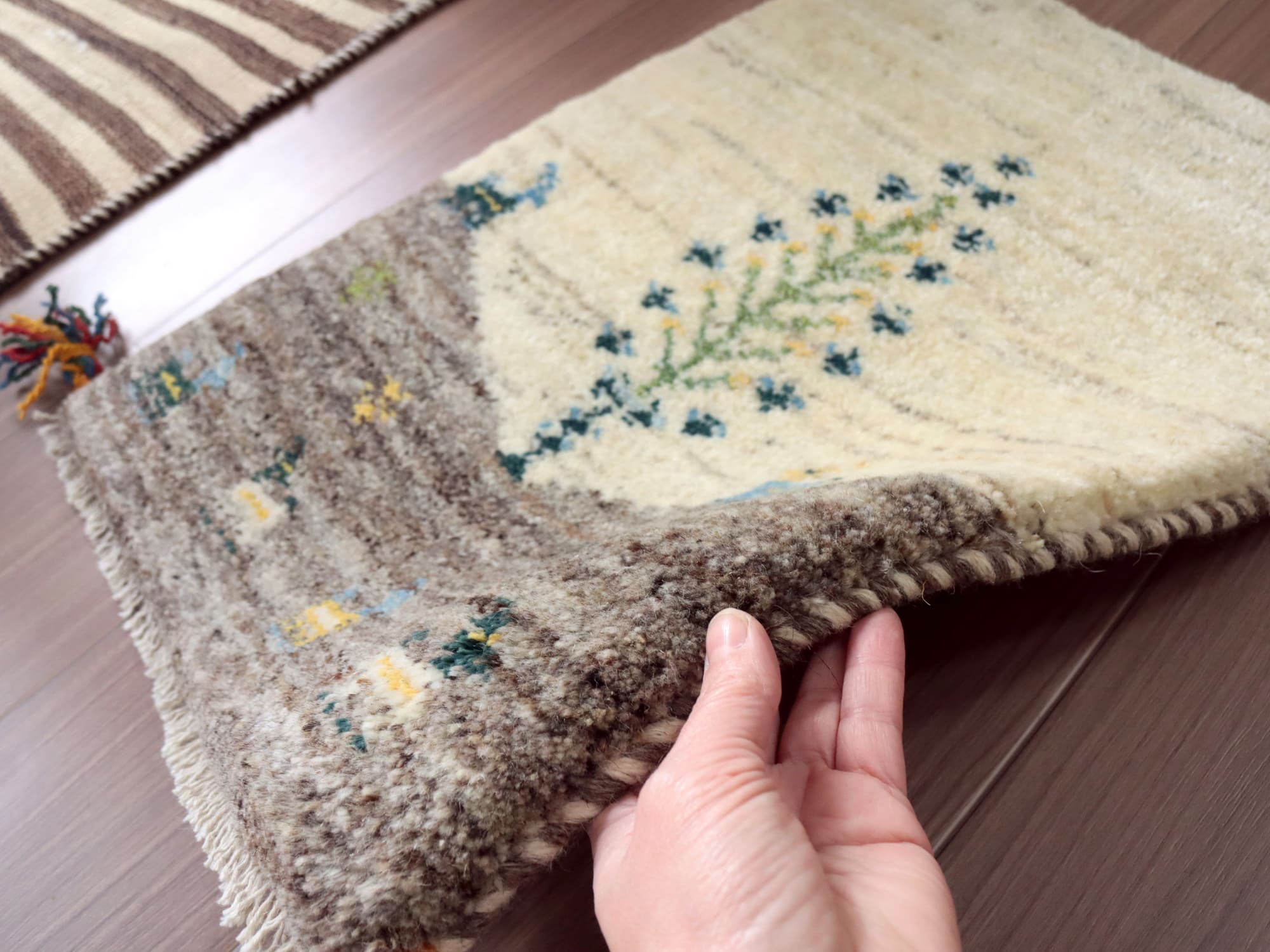 ミニギャッベ イラン 遊牧民のふかふかラグ 54x40cm 花の咲く生命の樹
