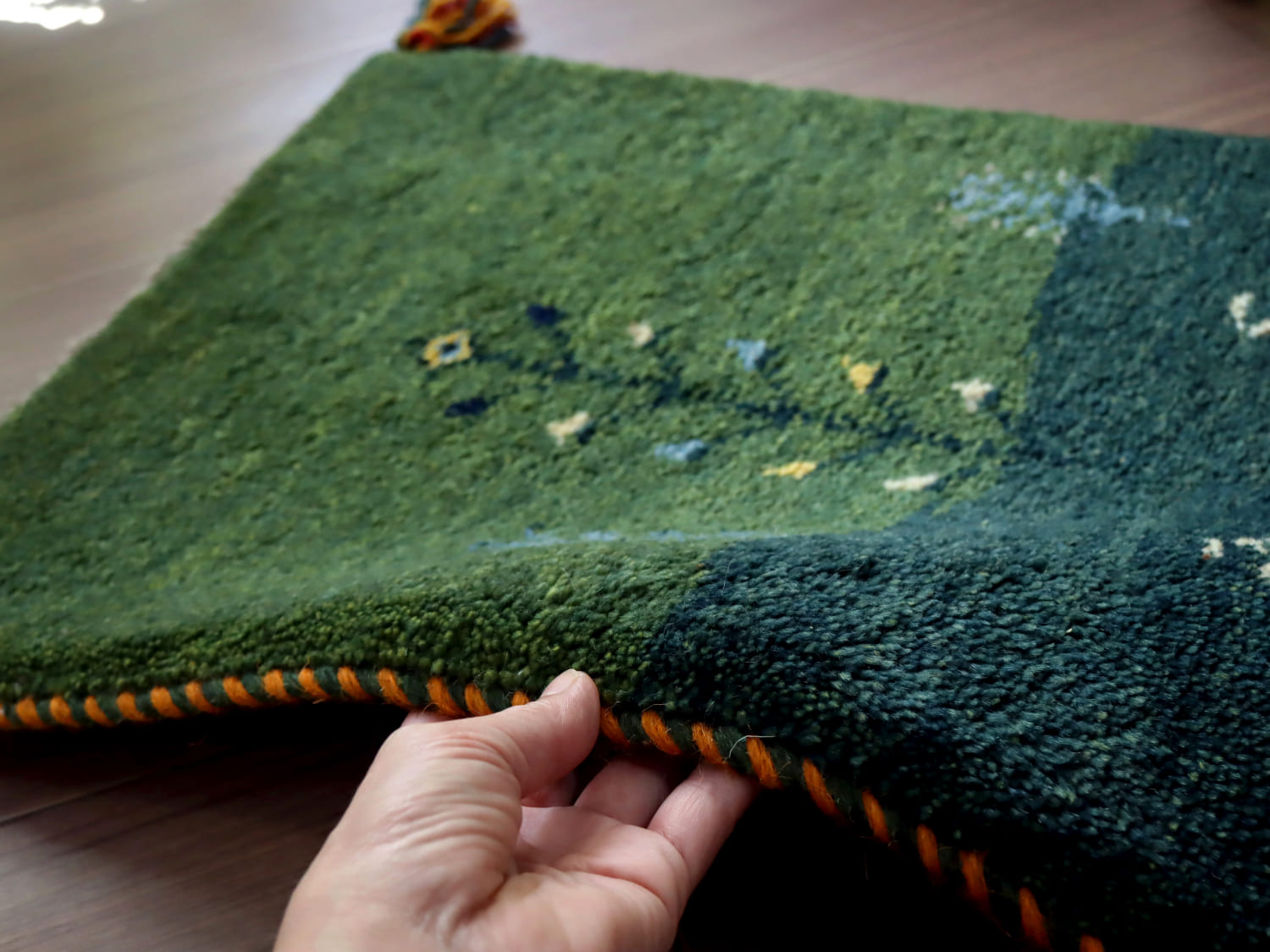 Key:Gabbeh, Tribal rug, Shiraz, Fars, Iran, Persia, Wool, ギャッベ, ギャベ, グリーン 緑 天然染料 草木染 ラグ, 絨毯, イラン, シラーズ, ペルシャ, バザールギャッベ, ポンポン, 手織り, 一点もの, 玄関マット, ふかふか, ガラタバザール