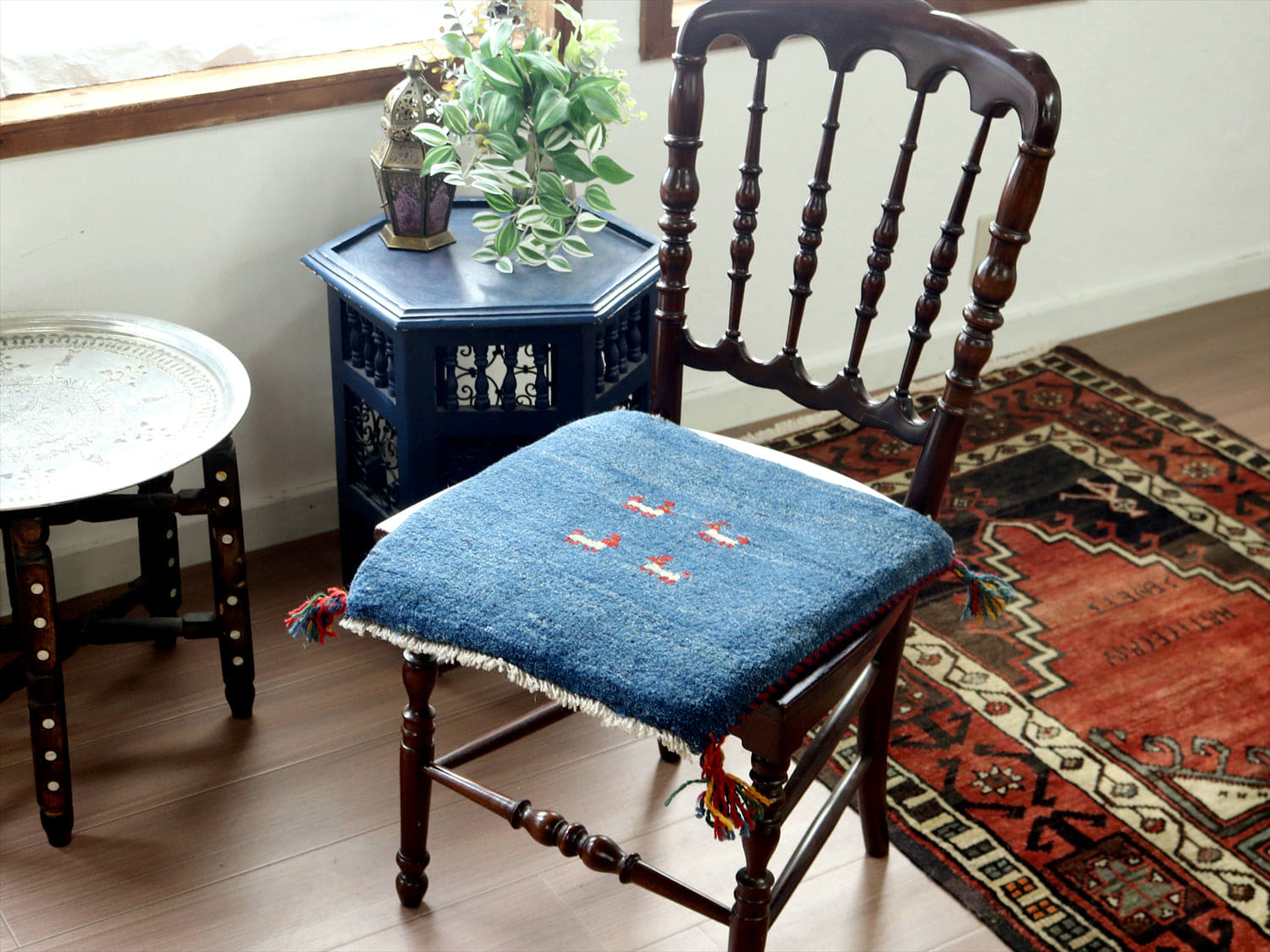 ギャベ イラン産 座布団サイズ 42x42cm ブルー 遊牧民の手織りギャッベ