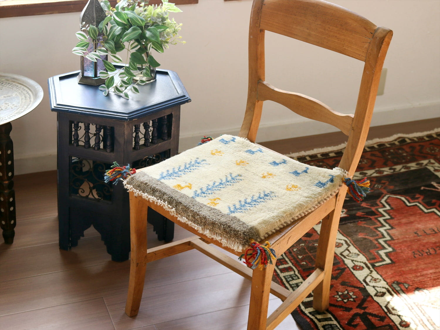 ギャッベ Gabbeh 座布団サイズギャベ 37x38cm ナチュラルアイボリー イラン製手織り
