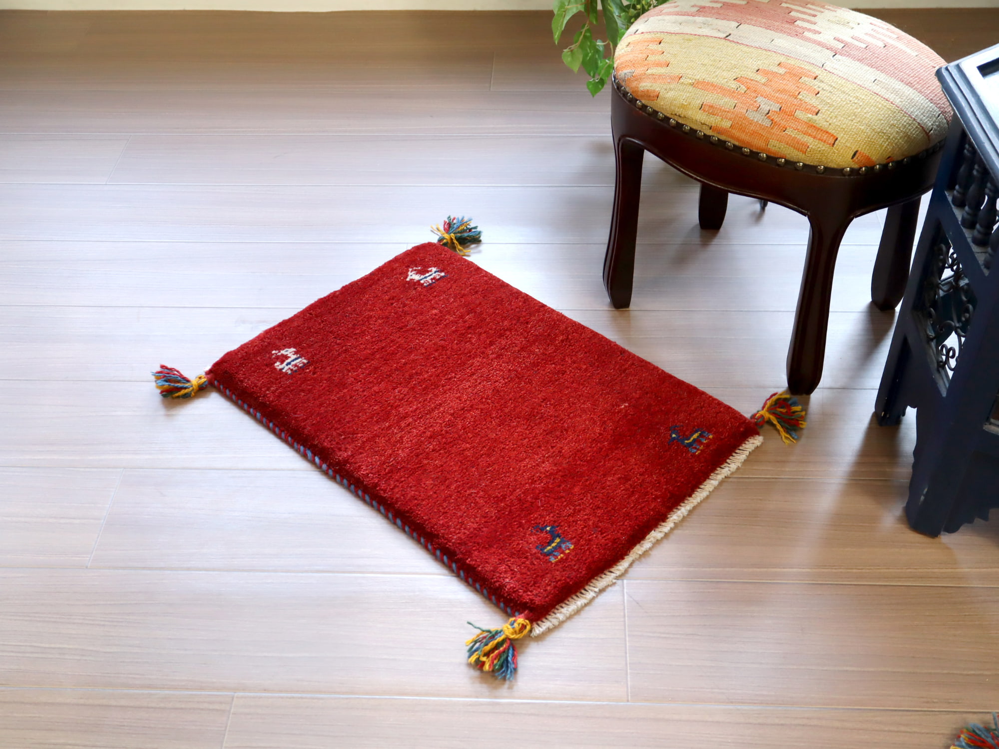 - ギャッベ 手織り イラン産 58x40cm レッド 赤 シンプル 無地