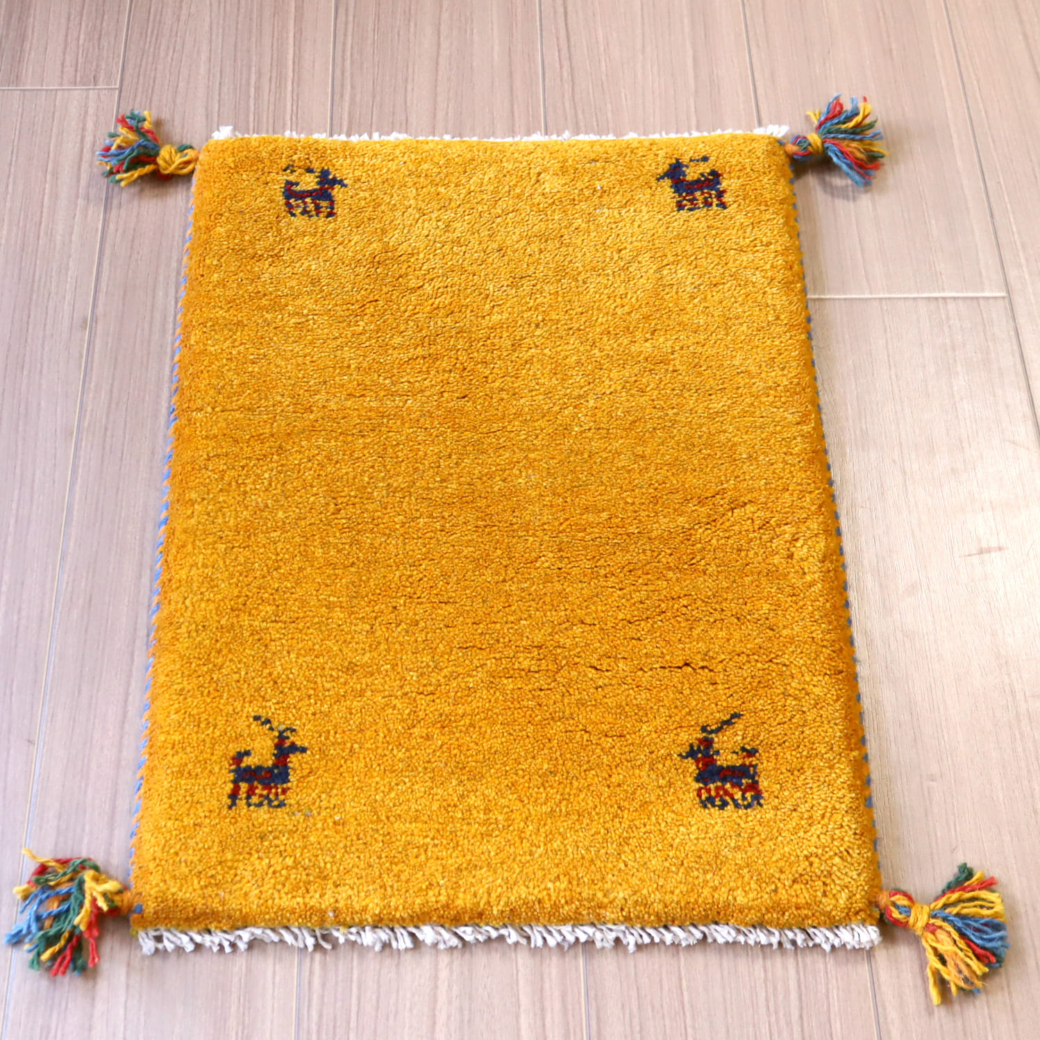 ギャッベ 手織り イラン産 57x41cm イエロー 無地 シンプル