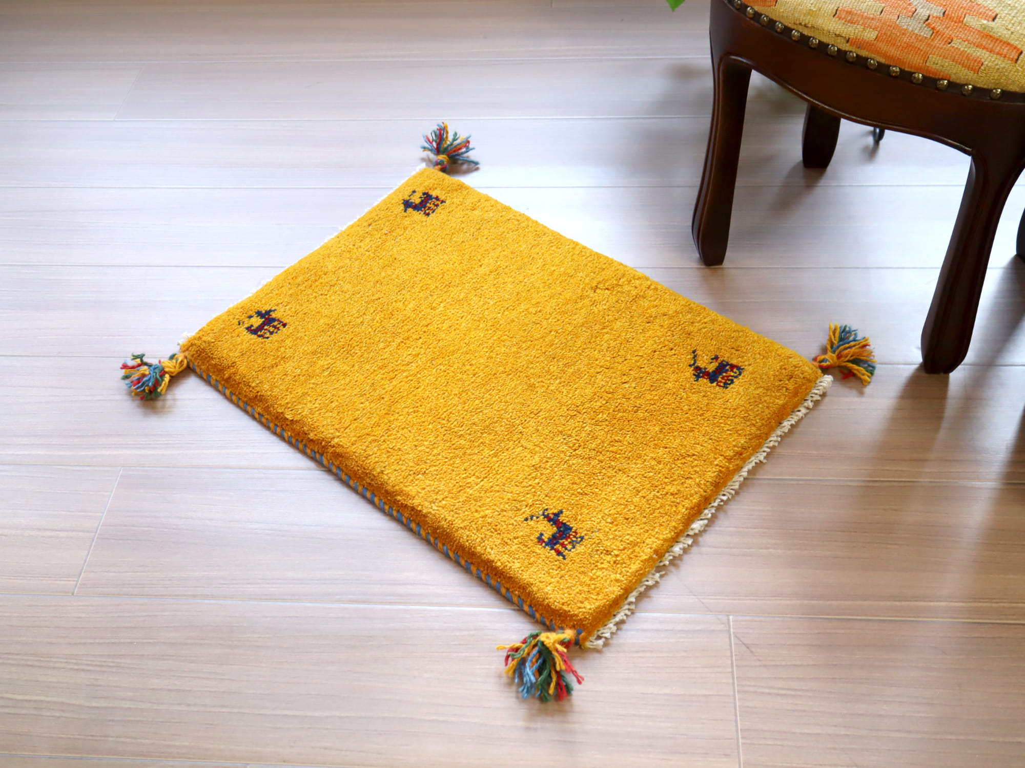 - ギャッベ 手織り イラン産 57x41cm イエロー 無地 シンプル