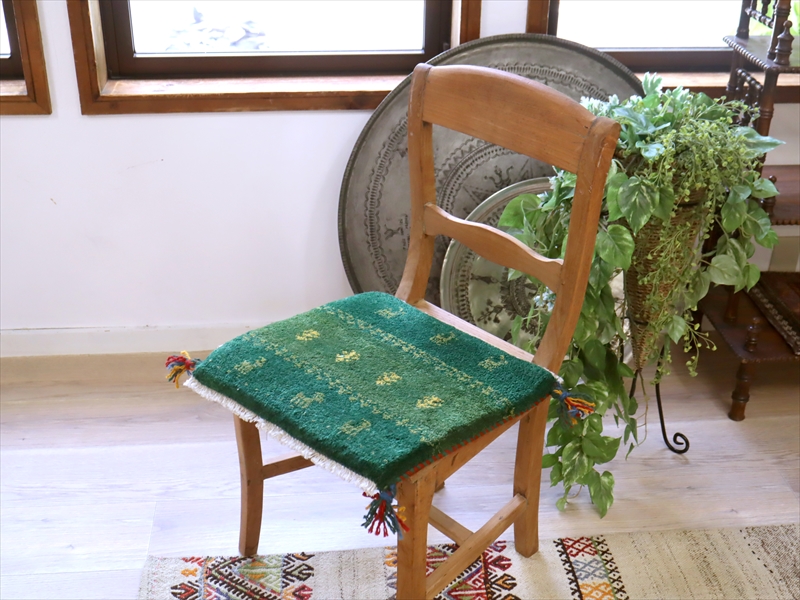 - ギャッベ イラン産手織り 座布団サイズ 37x42cm グリーン