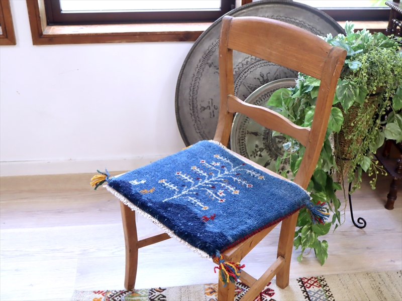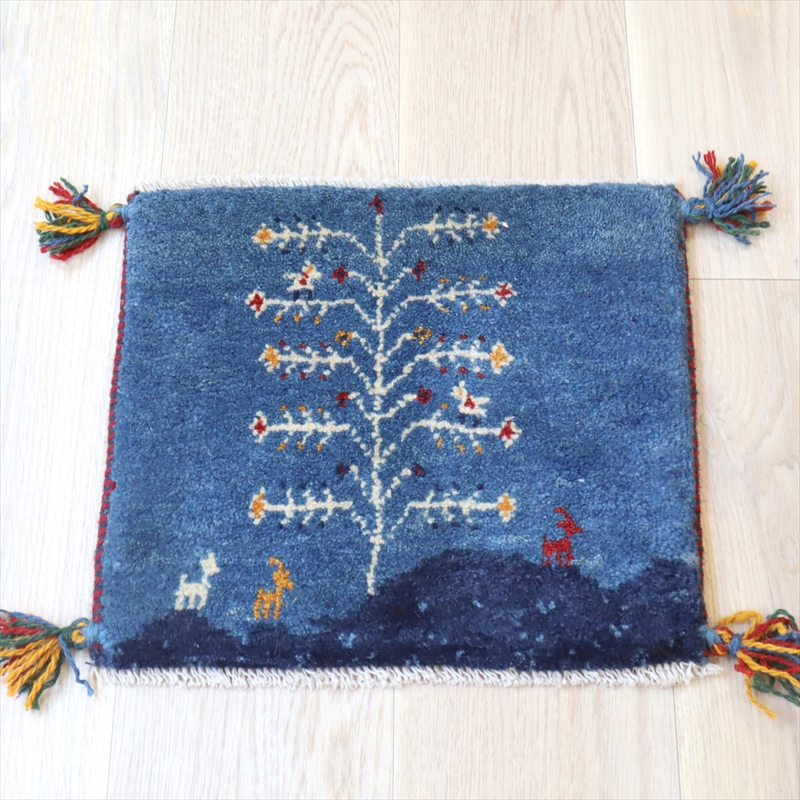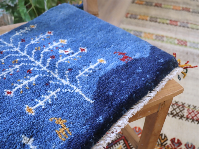 ギャッベ イラン産手織り 座布団サイズ 36x42cm ブルー