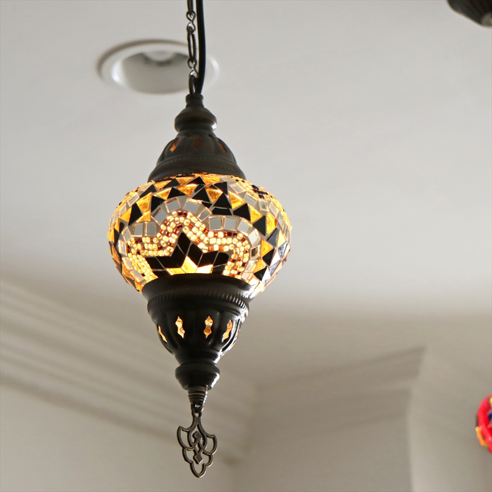 トルコランプ モザイクランプ 直径13cm 全高67cm アンバーイエロー ペンダントライト