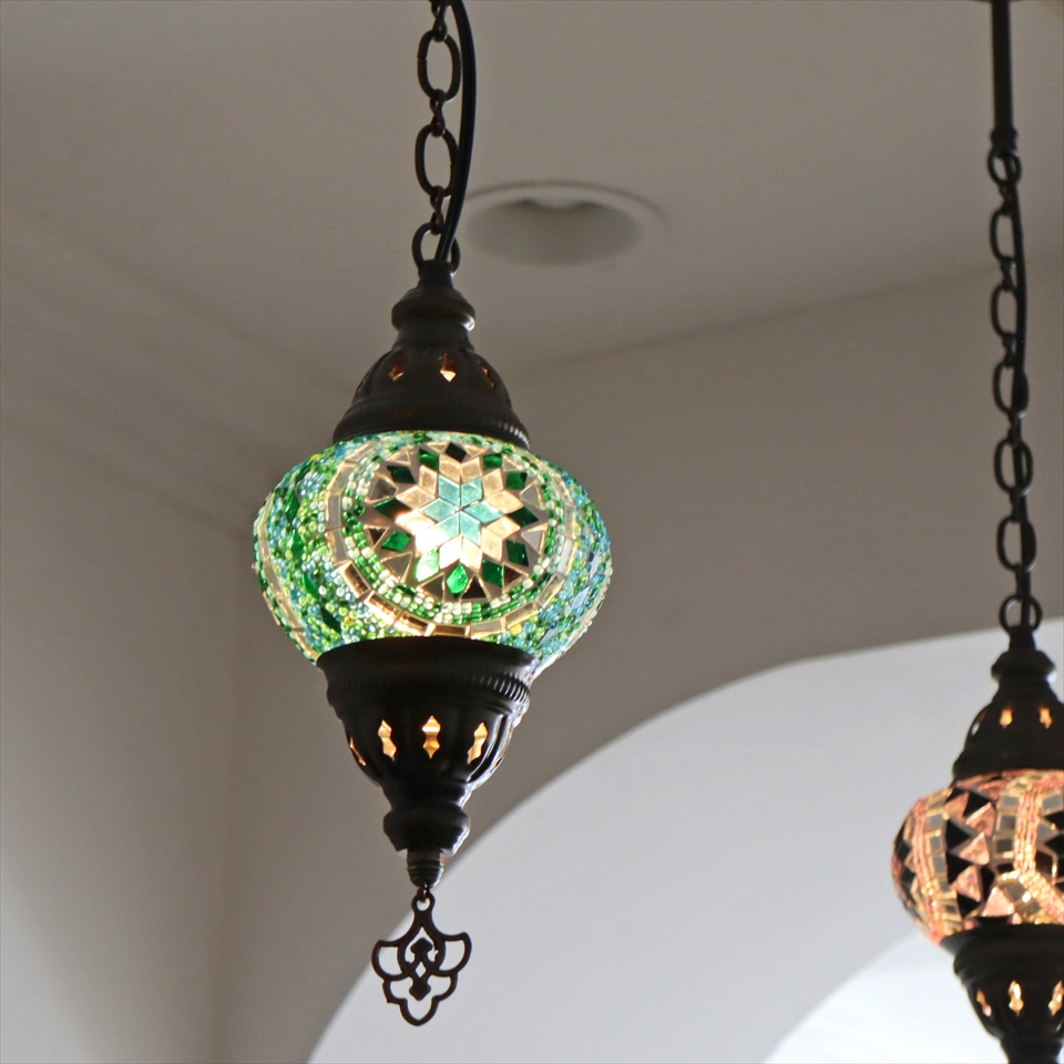 - トルコランプ モザイクランプ 直径13cm 全高67cm ブルーグリーン ペンダントライト