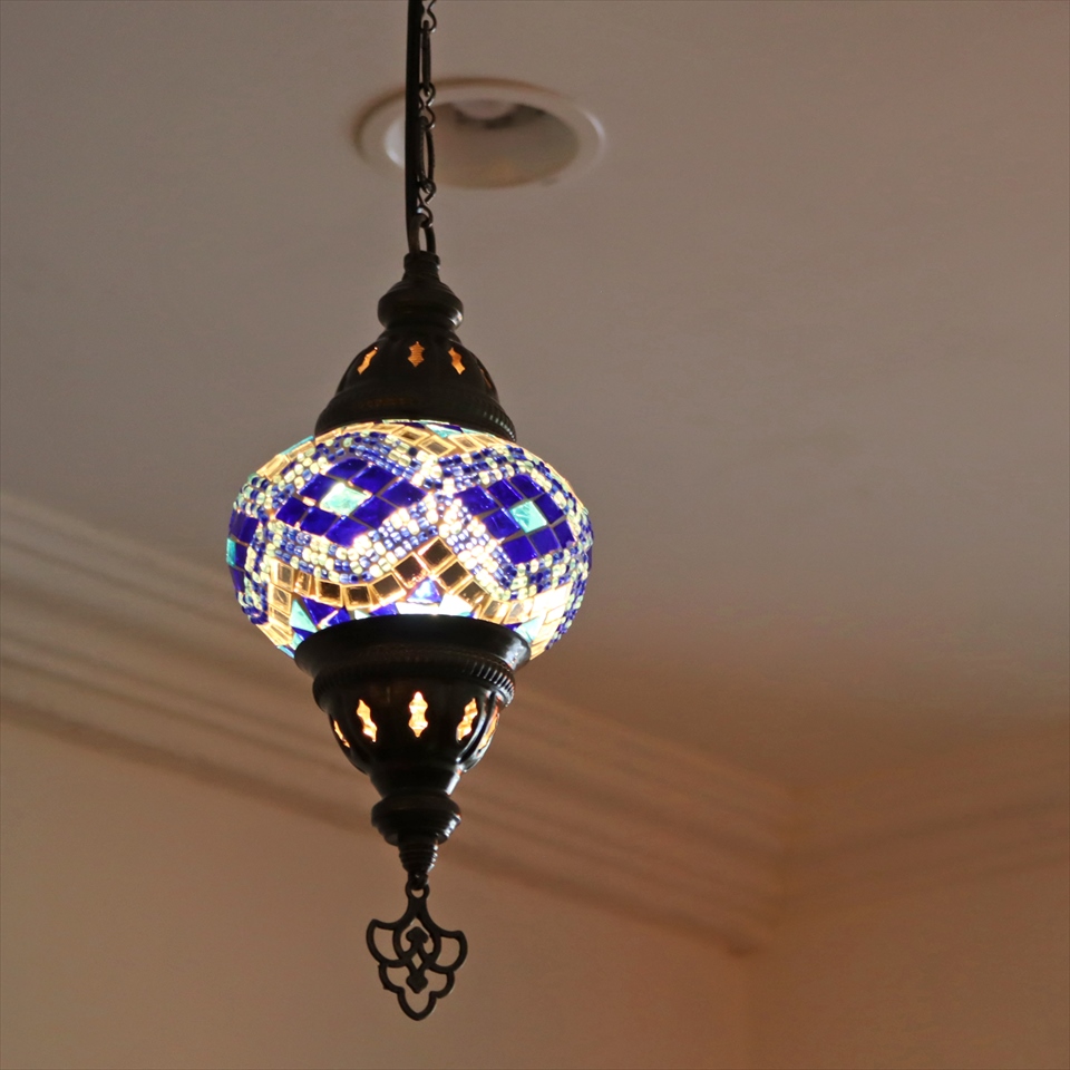 Key:トルコランプ モザイクランプ 天井照明 ガラスシェード ペンダントライト シーリングライト ランプ ライト 照明 間接照明 インテリア エスニック オリエンタル ガラスランプ 引掛けシーリング対応