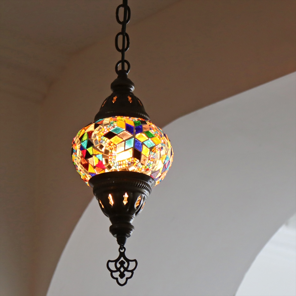 トルコランプ モザイクランプ 直径13cm 全高67cm ミックスカラー ペンダントライト
