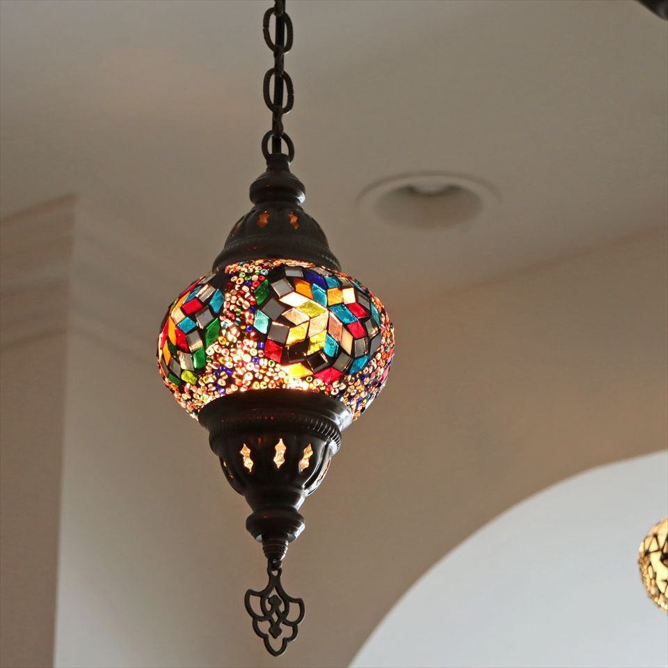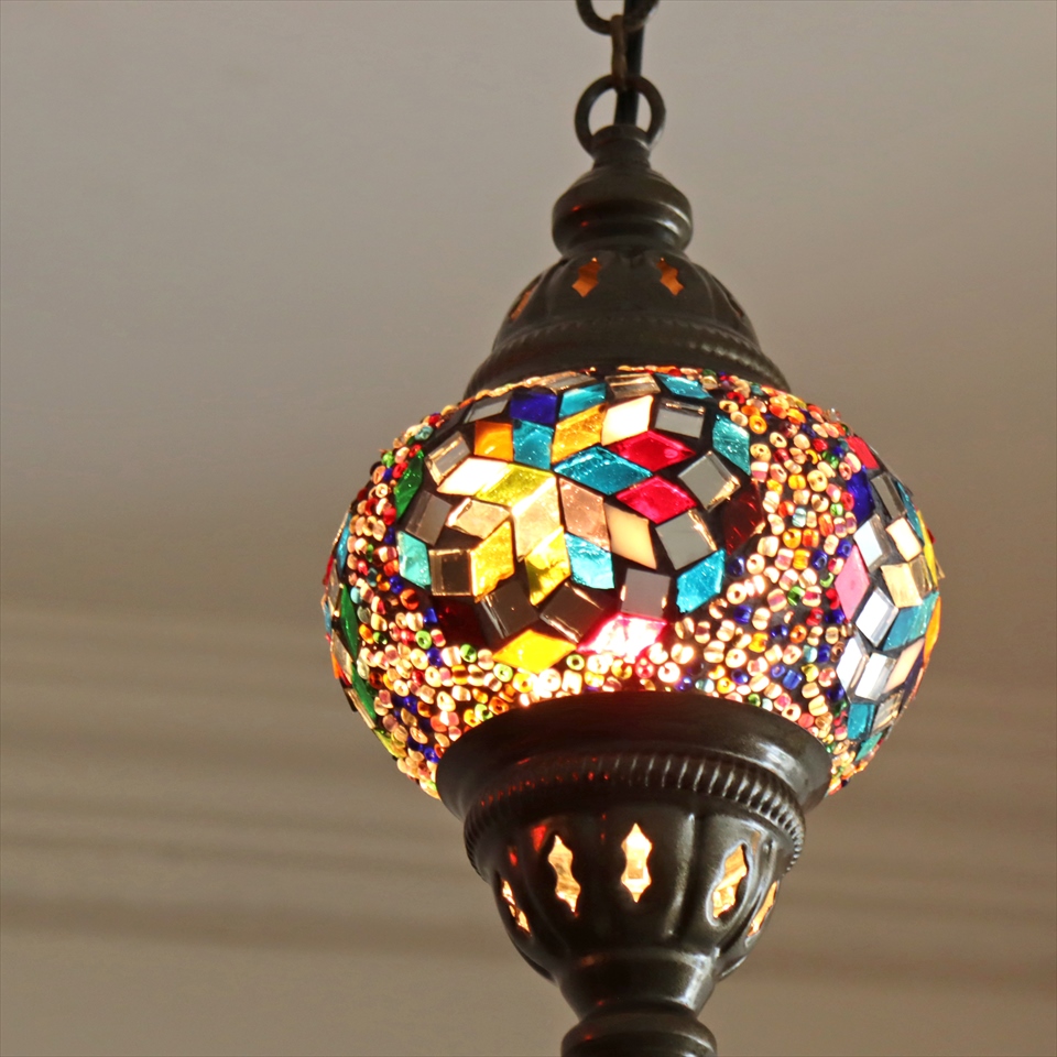 トルコランプ モザイクランプ 直径13cm 全高67cm ミックスカラー ペンダントライト