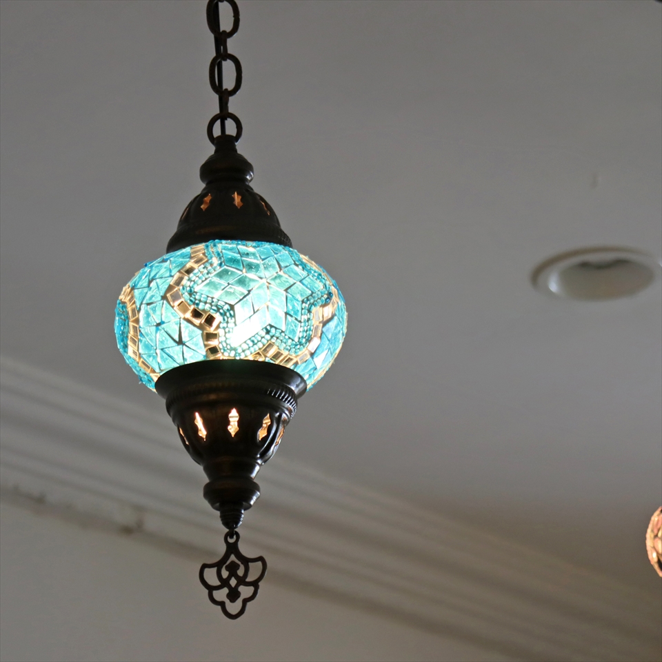 トルコランプ モザイクランプ 直径13cm 全高67cm ターコイズブルー ペンダントライト