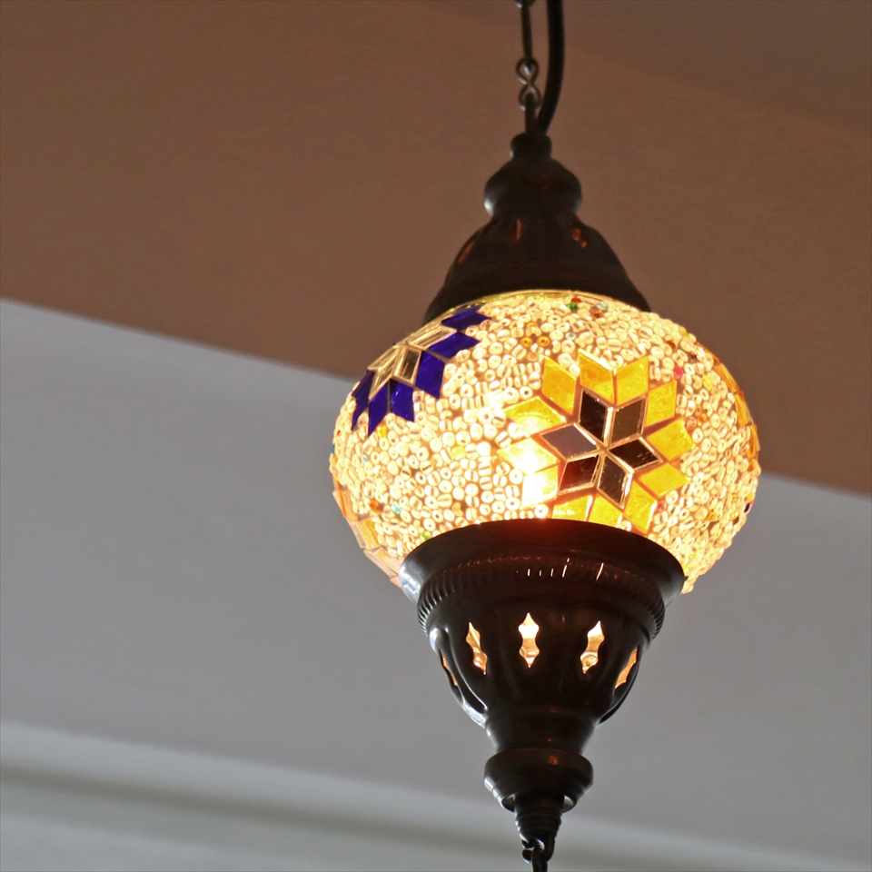 Key:トルコランプ モザイクランプ 天井照明 ガラスシェード ペンダントライト シーリングライト ランプ ライト 照明 間接照明 インテリア エスニック オリエンタル ガラスランプ 引掛けシーリング対応