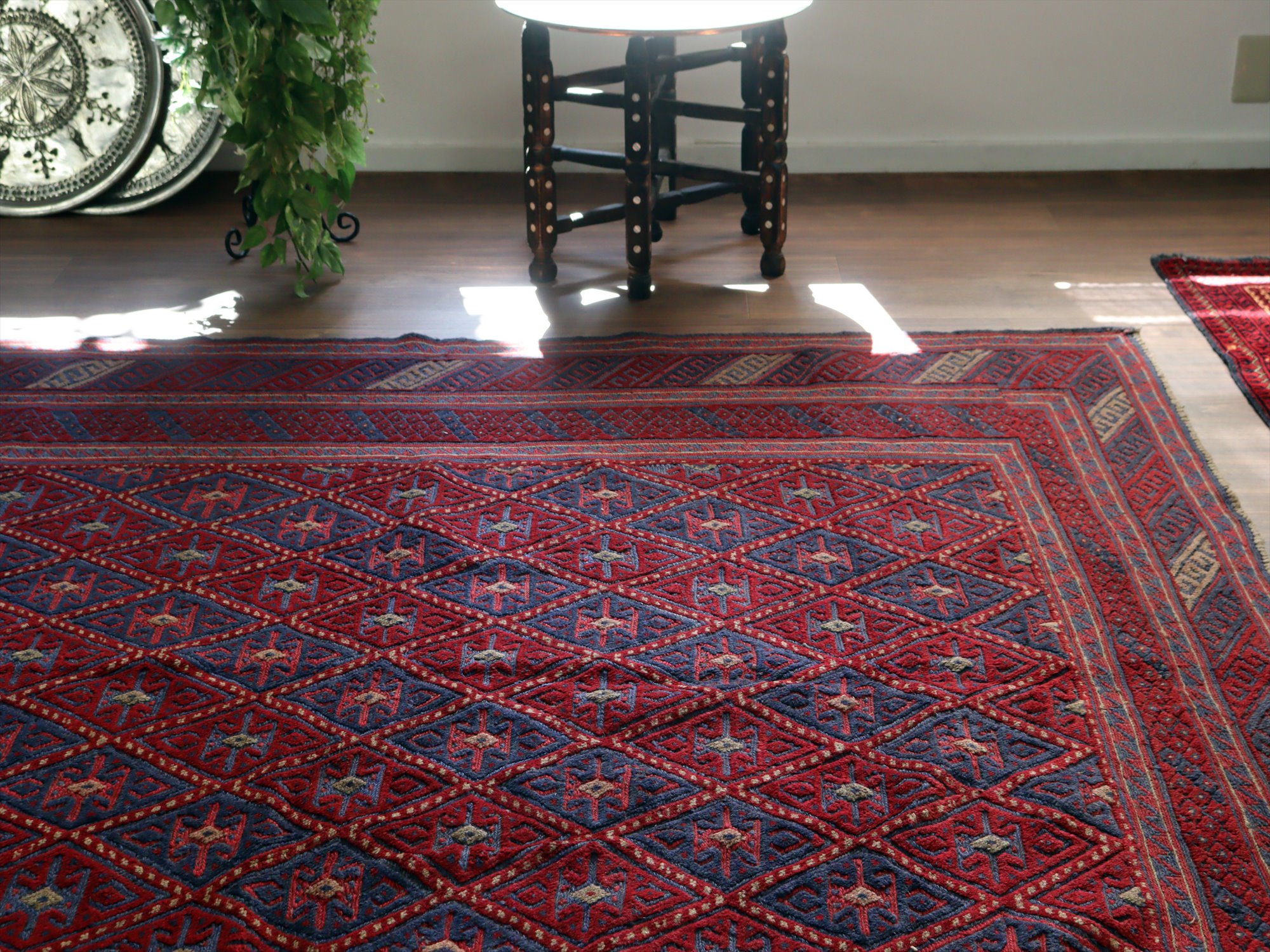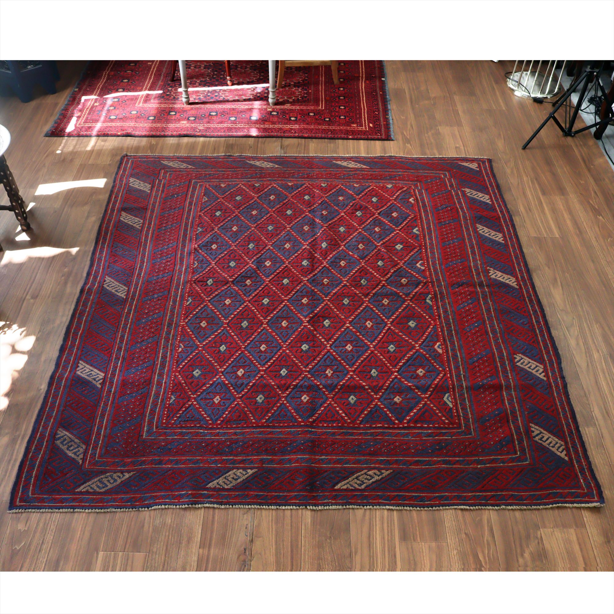 - オールドキリム アフガニスタン ミシュワニ205×197cm 連なる幾何学模様