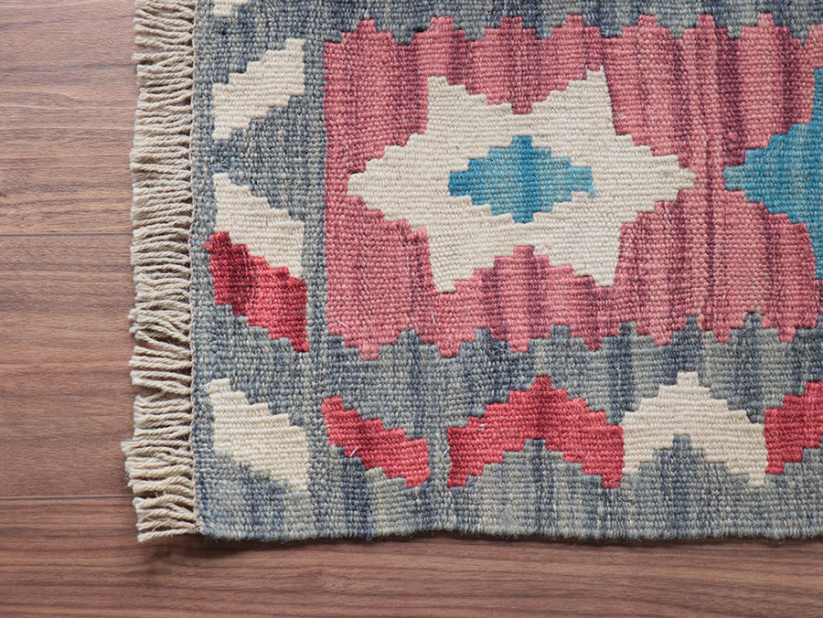 キリムはすべて手織りで作られています。織る女性の手の加減によって、サイズの多少の誤差やゆがみ等がありますことはご了承願います。