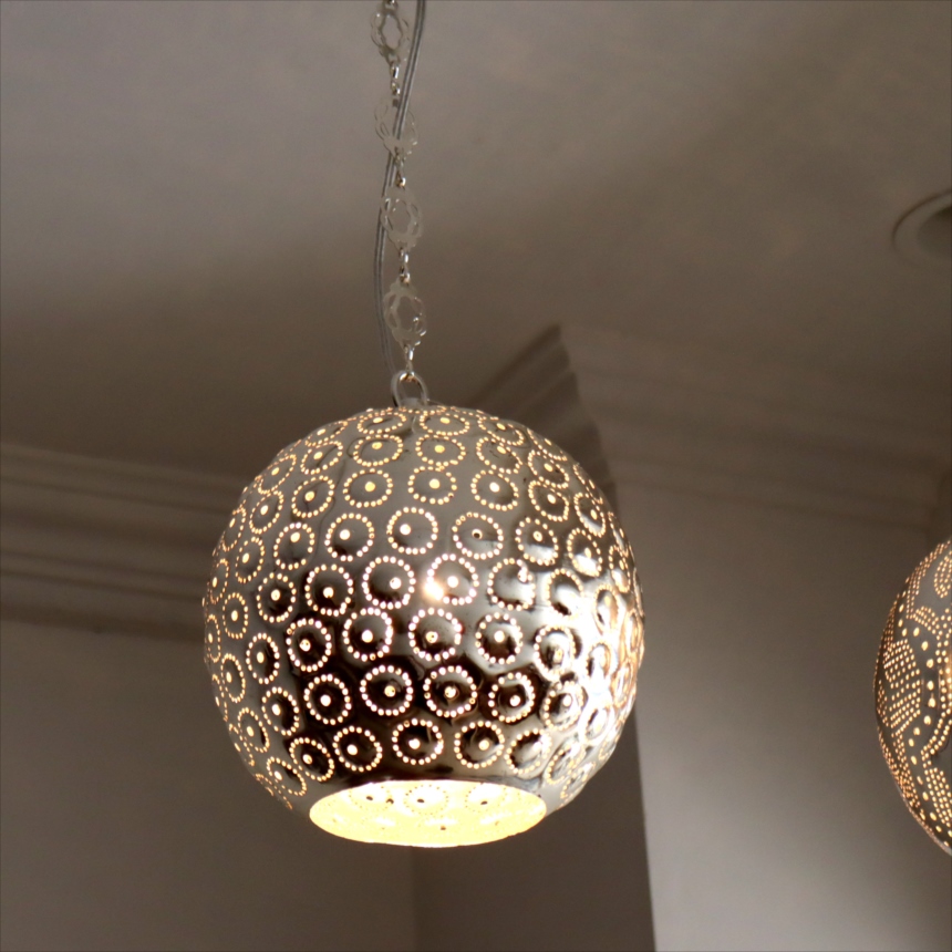 6. モロッコランプ メタルシェードランプ ラウンド形 φ22cm エジプト製 ハンドメイド