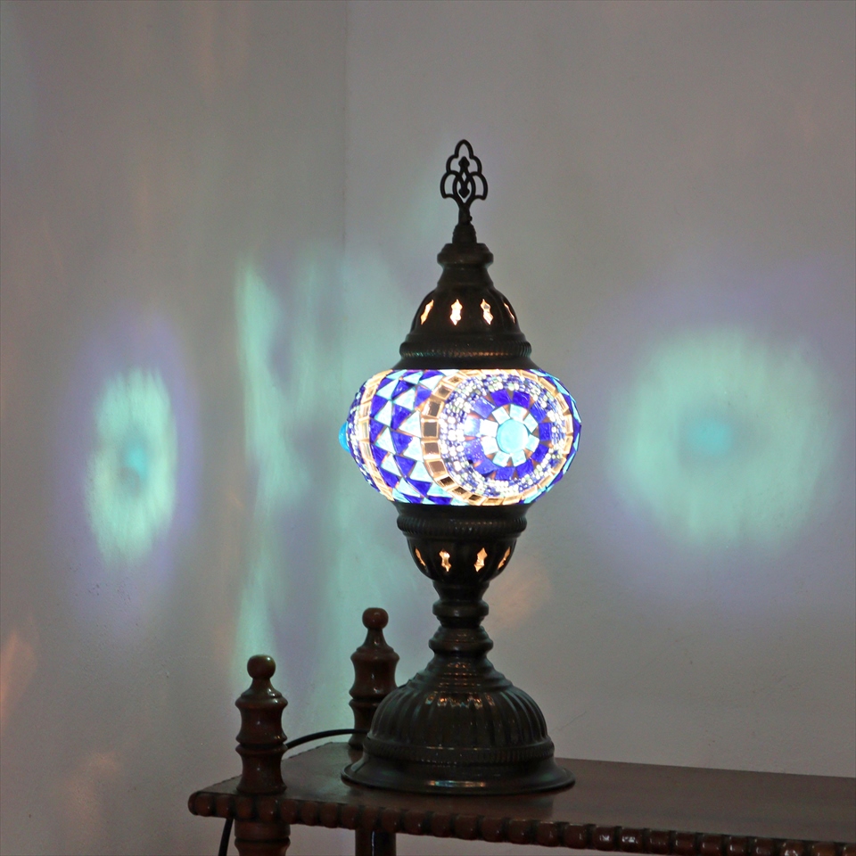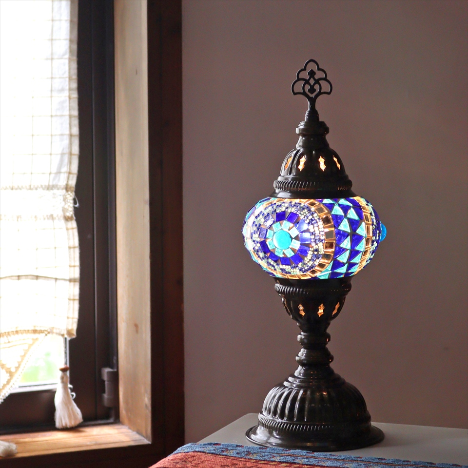 - トルコランプ モザイクテーブルランプ 直径13cm 全高36cm ブルー