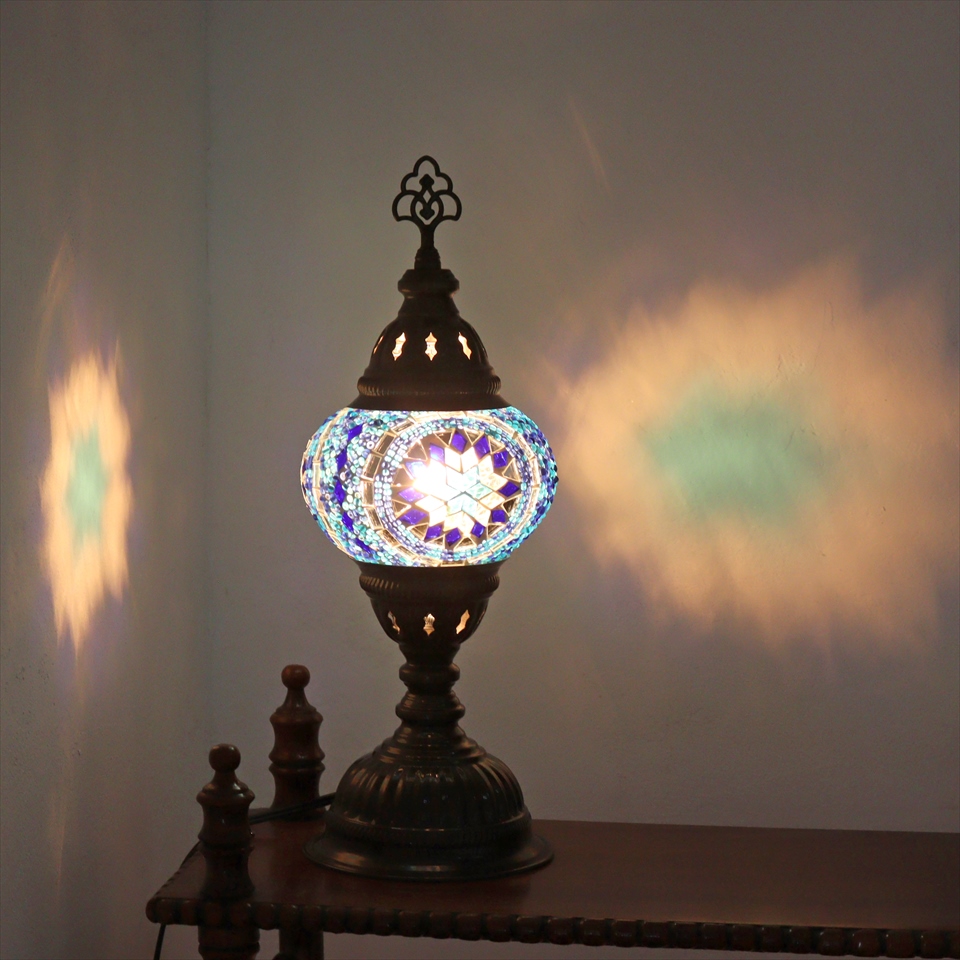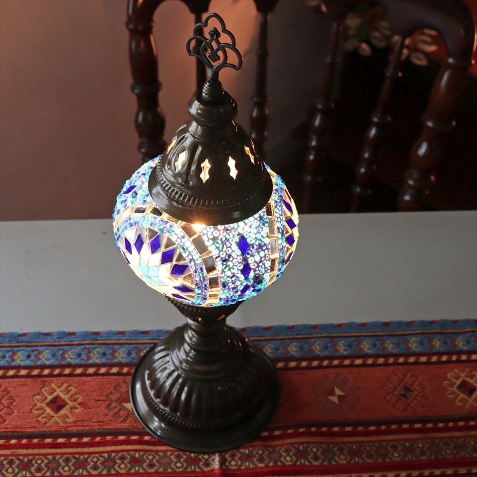 - トルコランプ モザイクテーブルランプ 直径13cm 全高36cm ブルー