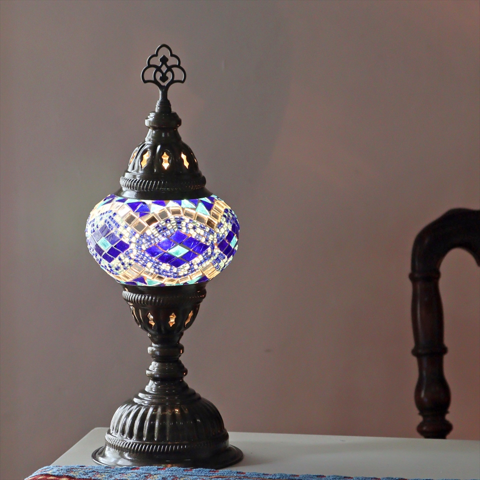 - トルコランプ モザイクテーブルランプ 直径13cm 全高36cm ブルー/アーガイル