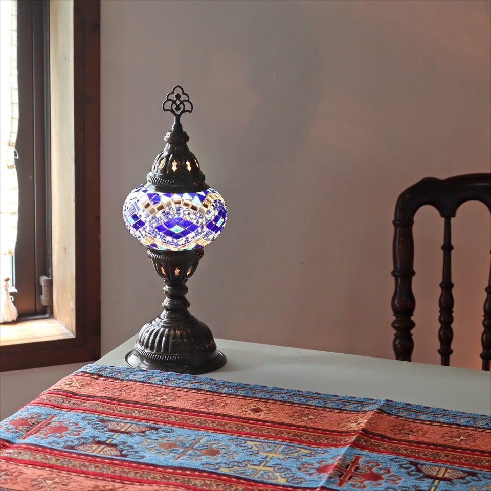 トルコランプ モザイクテーブルランプ 直径13cm 全高36cm ブルー/アーガイル
