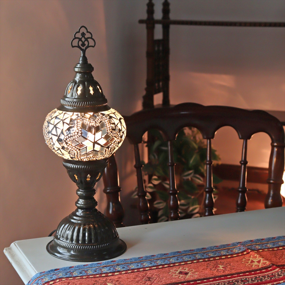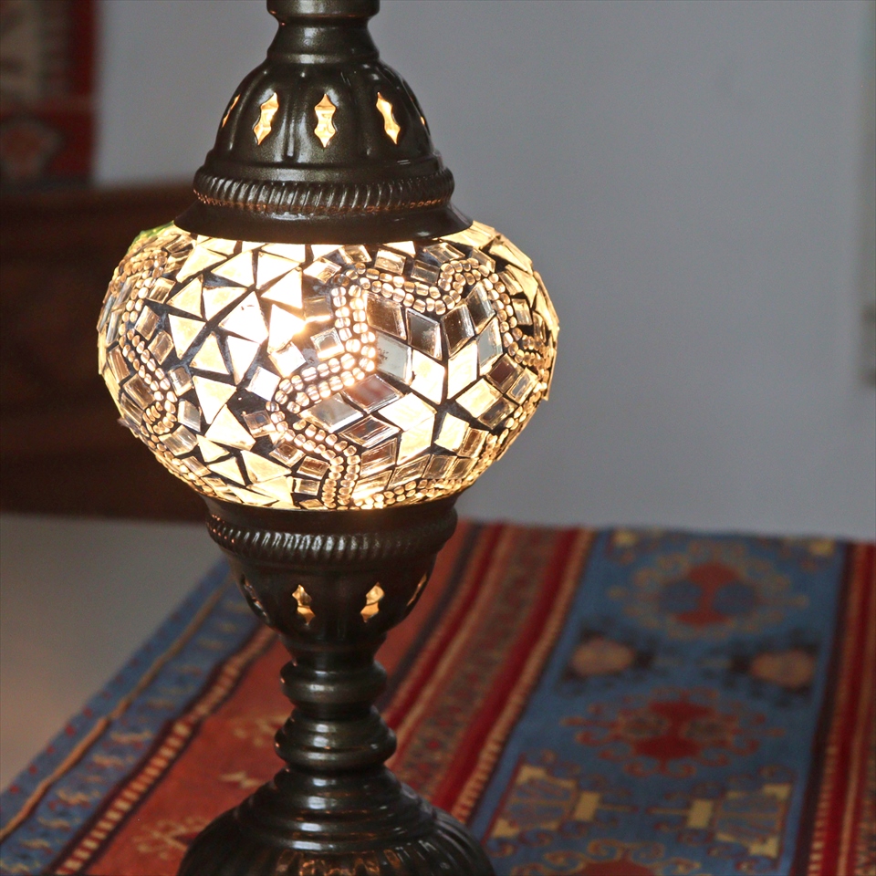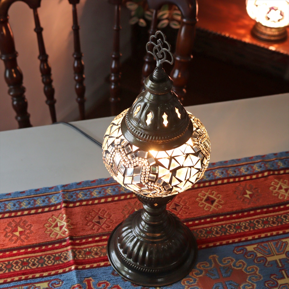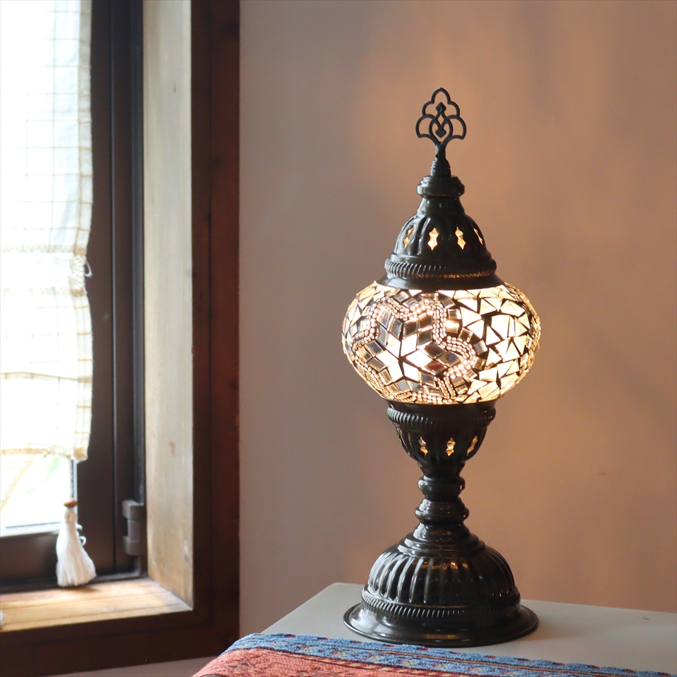 トルコランプ モザイクテーブルランプ 直径13cm 全高36cm ホワイト