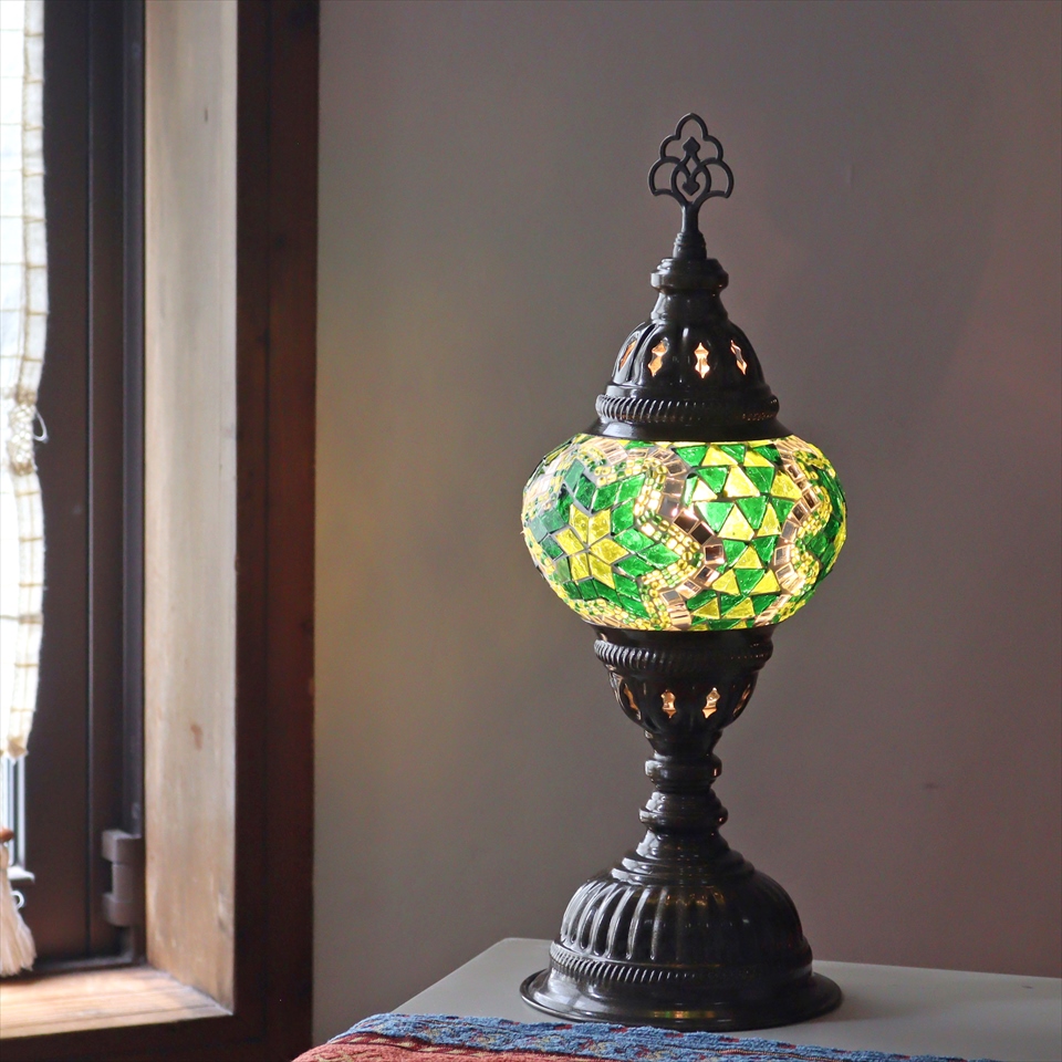 - トルコランプ モザイクテーブルランプ 直径13cm 全高36cm グリーン