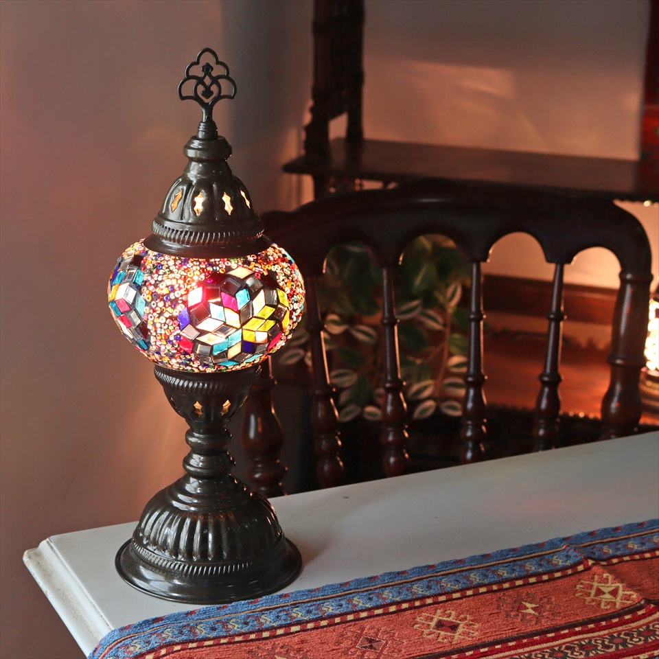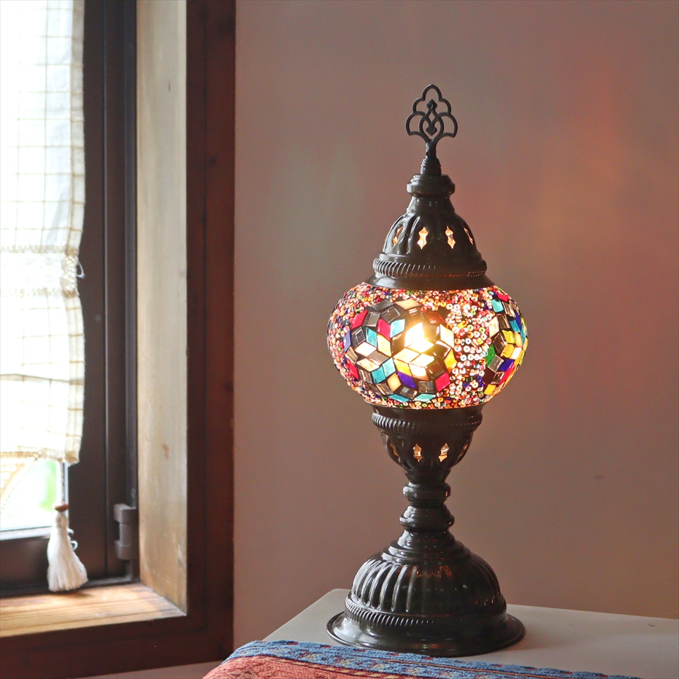 - トルコランプ モザイクテーブルランプ 直径13cm 全高36cm ミックスカラー