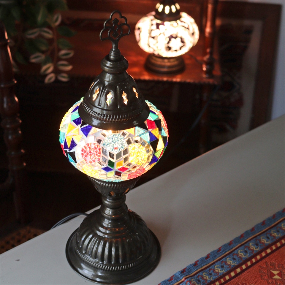 - トルコランプ モザイクテーブルランプ 直径13cm 全高36cm ミックスカラー