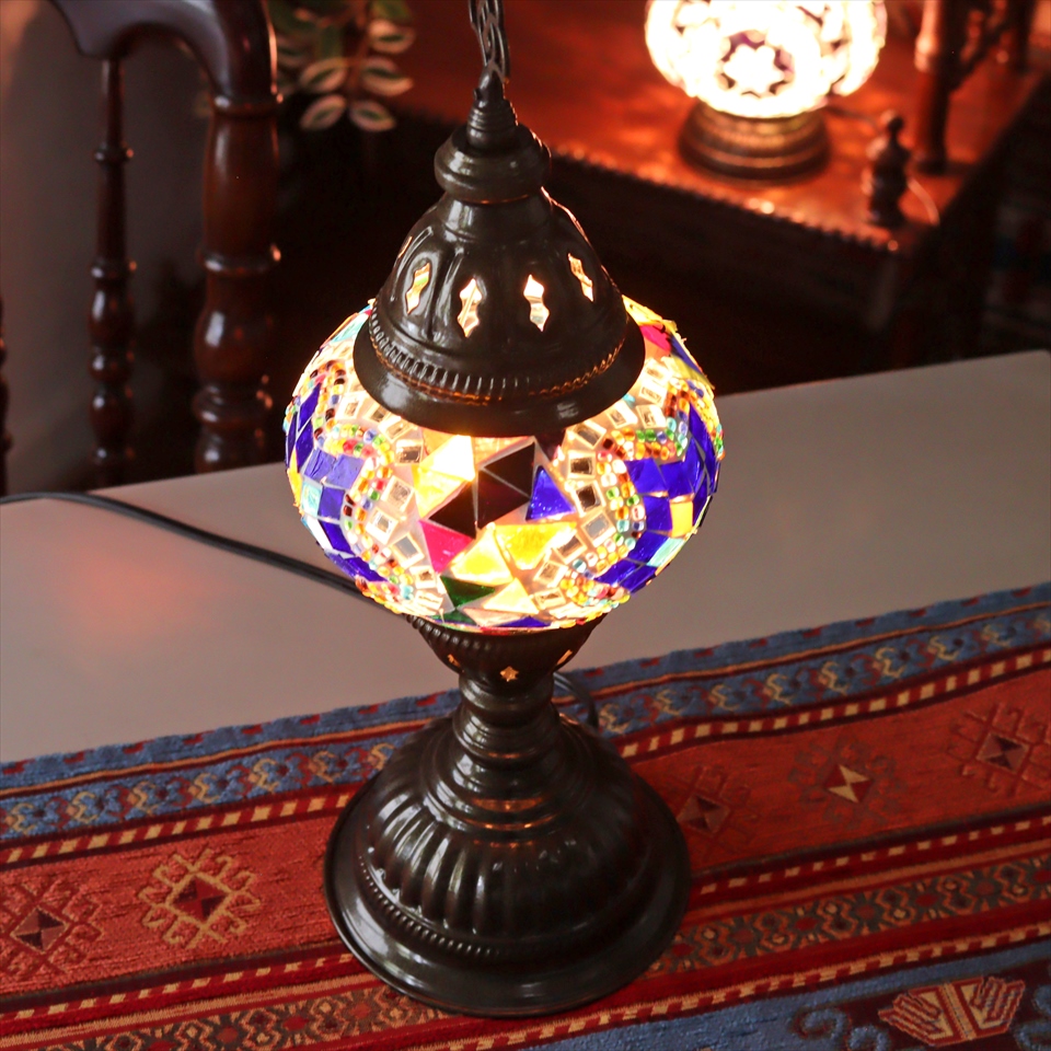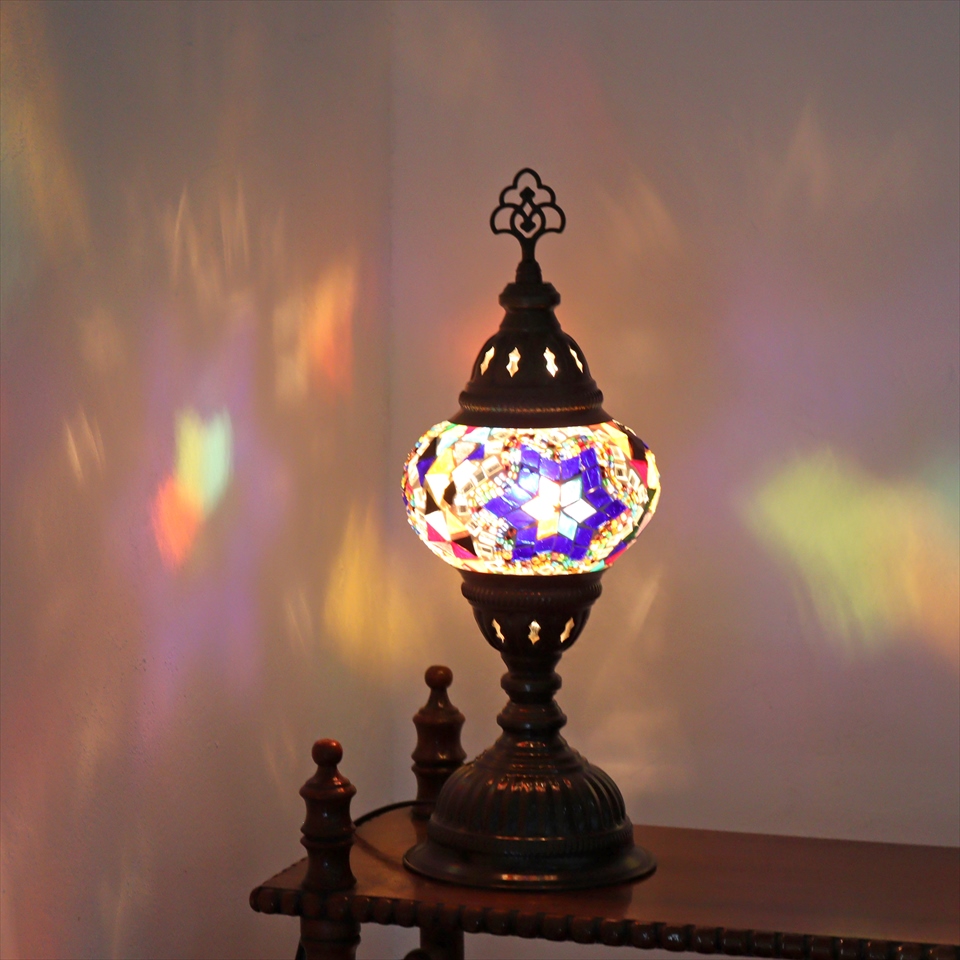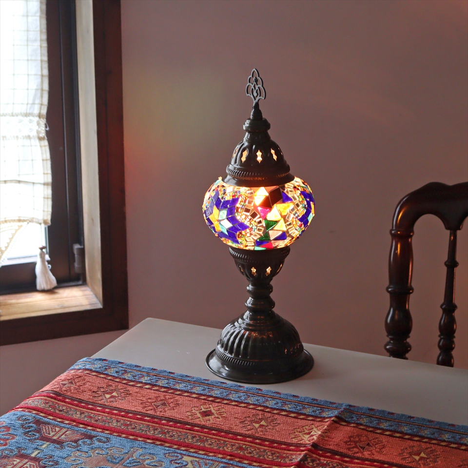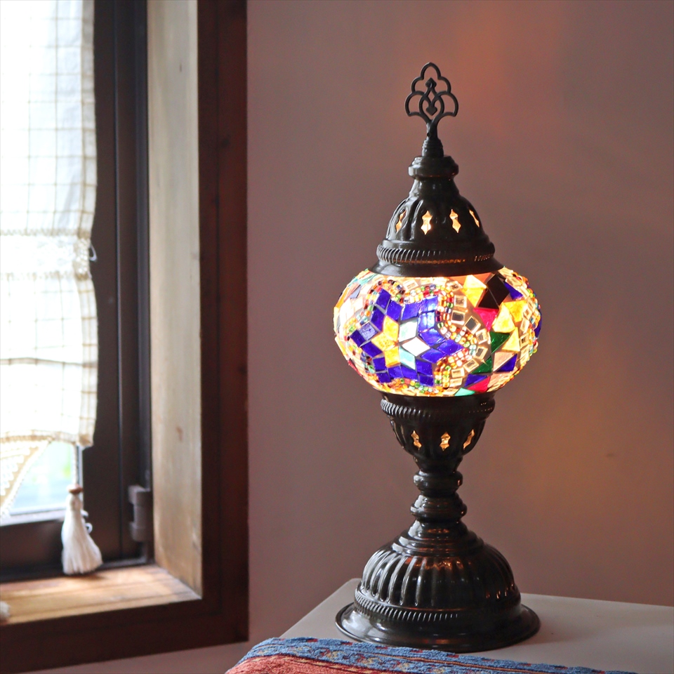 - トルコランプ モザイクテーブルランプ 直径13cm 全高36cm ミックスカラー