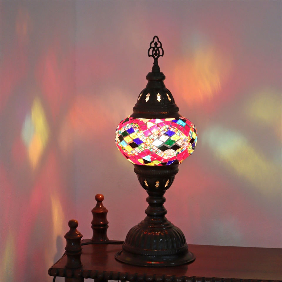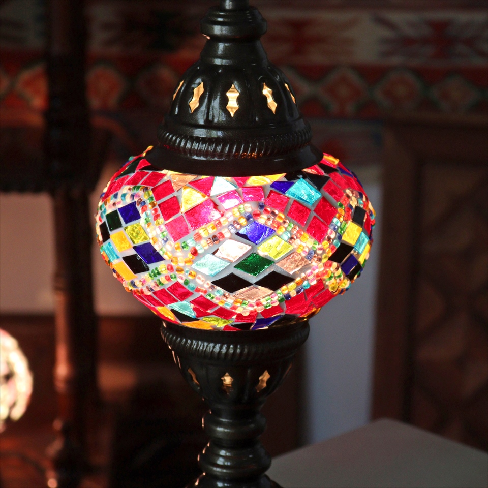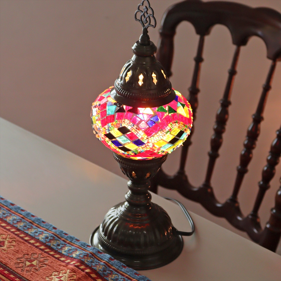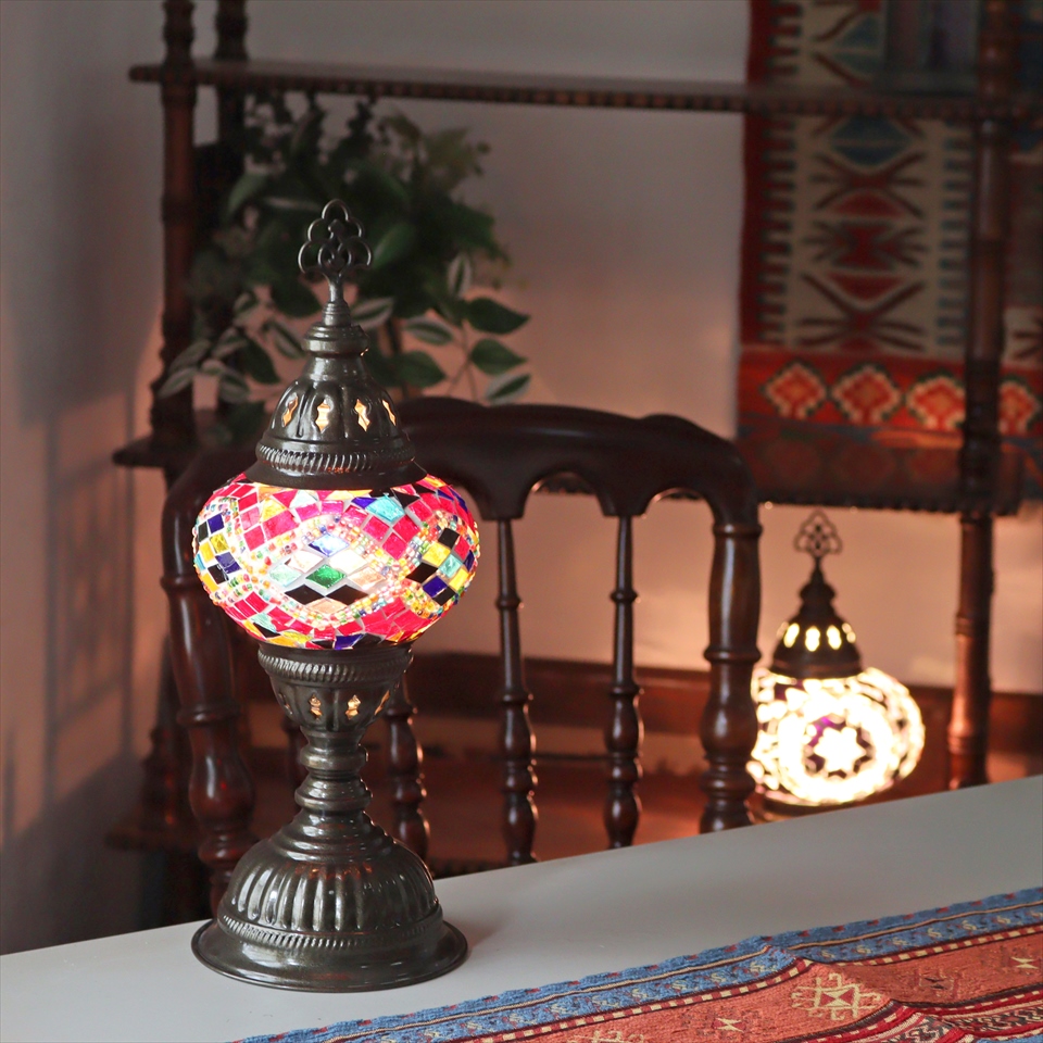 - トルコランプ モザイクテーブルランプ 直径13cm 全高36cm ミックスカラー